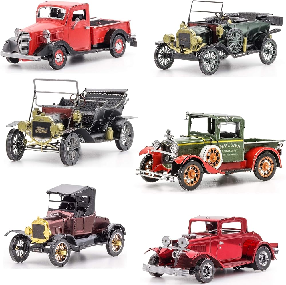 Fascinations Metal Earth 3D Metal Model Kits Ford Set of 6-1908 Model T Dark Green - 1910 Model T - 1931 Model A - 1932 Coupe - 1937 Pickup - 1925 Model T Runabout