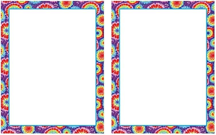 Add style and flair to your correspondence with Barker Creek's decorative computer paper. A multi-directional border makes this paper versatile for home and office use. Our tie-dye computer paper is affordable and beautiful. Use the printer paper to add a memorable touch to letters, design custom awards, certificates, presentations & reports. Create eye-catching invitations and bulletin boards. Use vertically for writing letters, creating invitations and printing handouts. Turn it sideways to create customized award certificates, notices and signs. The possibilities are limited only by your imagination. The fun tie-dye design along the border of this tie-dye paper makes it completely unique and gives your project a fun, on-trend feel! Each package of decorative printer paper includes 50 sheets of 8 ½ x 11 inch paper. This decorative paper is compatible with most laser and inkjet printers. Coordinating products are available. Search: Barker Creek Groovy.