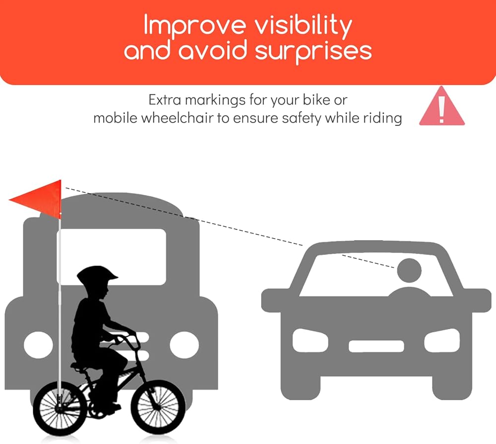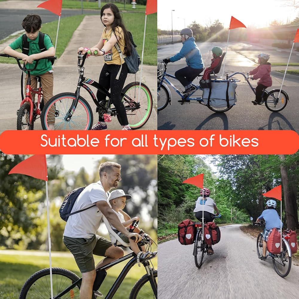 Bright color warning:The flag is bright orange on both sides, allowing you to be quickly and easily identified while riding. The high-visibility safety flag ensures the safety of cyclists while riding on the road.