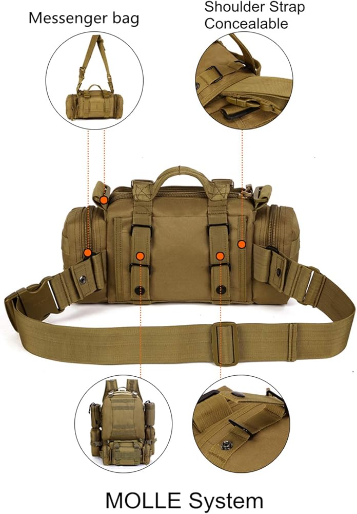 UNISTRENGH Fanny Deployment Bag Tactical Assault Gear Range Duffle Bag Waist Pack Military Sling Pack Hand Carry Camping Belt Bag Rucksack Outdoor Bumbag