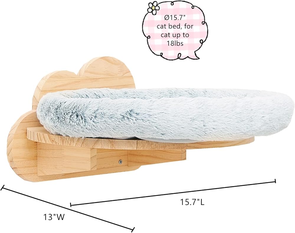【3-PACK CAT WALL BEDS】13"(L) x 15.7"(W) for the platform, and Ø15.7" for the cat cuddler cushion bed attached. Roomy enough for your cat to lounge, jump and play with ease.