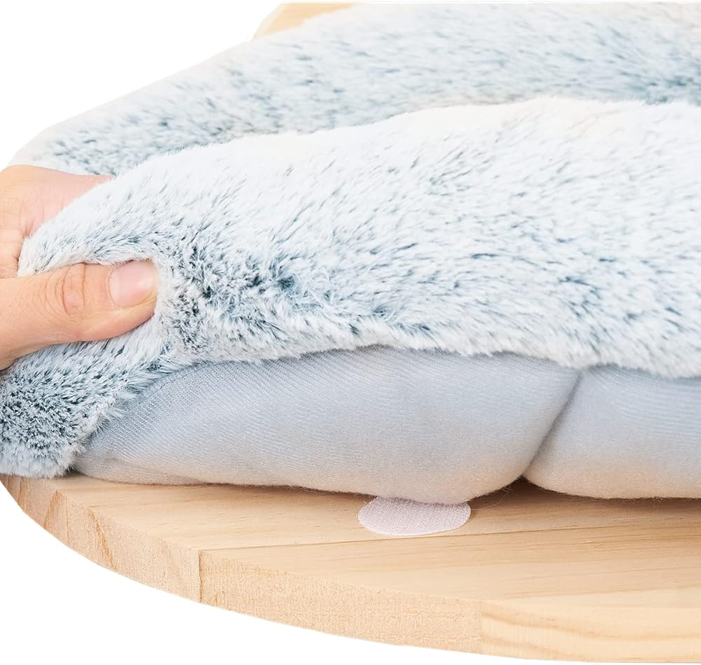 【MACHINE WASHABLE】The cat cushion bed is attached to the wood platform with hook & loop tapes. It can be removed easily and wash separately on the gentle cycle with mild detergent. The replacement cat bed is also available in our store.