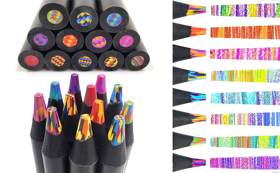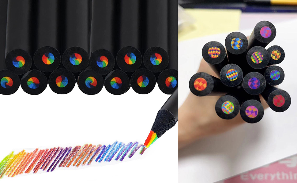 Multifunctional Design: Our rainbow pencils set features a unique multi-core rainbow pen that allows you to switch between different colors effortlessly, making it convenient for creating intricate designs or blending colors seamlessly.