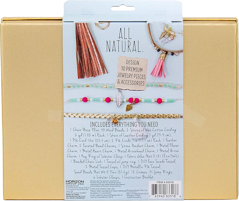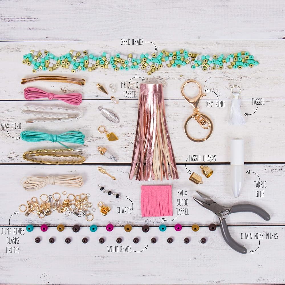 Add the finishing touches to your Boho chic look with customized jewelry designed by you with the STMT D.I.Assembly leather, charms & tassel jewelry kit! Design 10 jewelry and accessory pieces accented with colorful and natural finishes to layer, Wear and display. To get started, Use the included templates to design a macramé beaded bracelet, tassel Leather necklace and more.