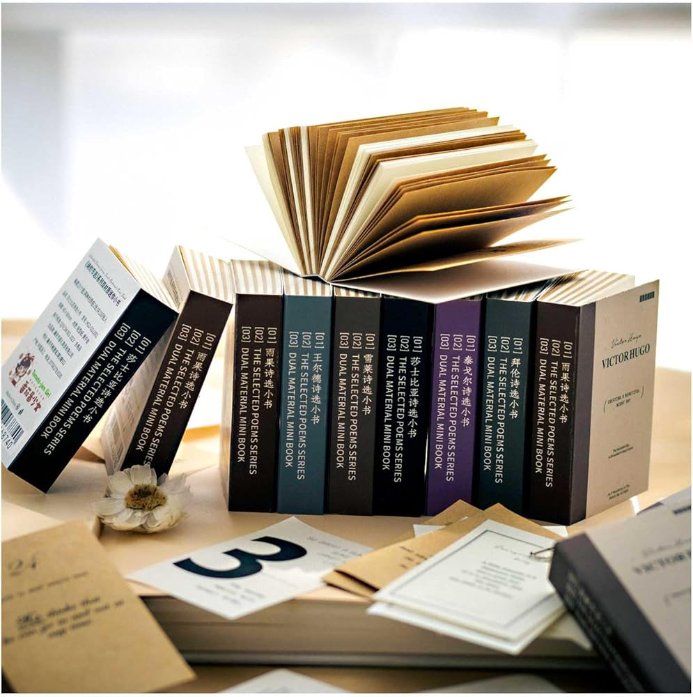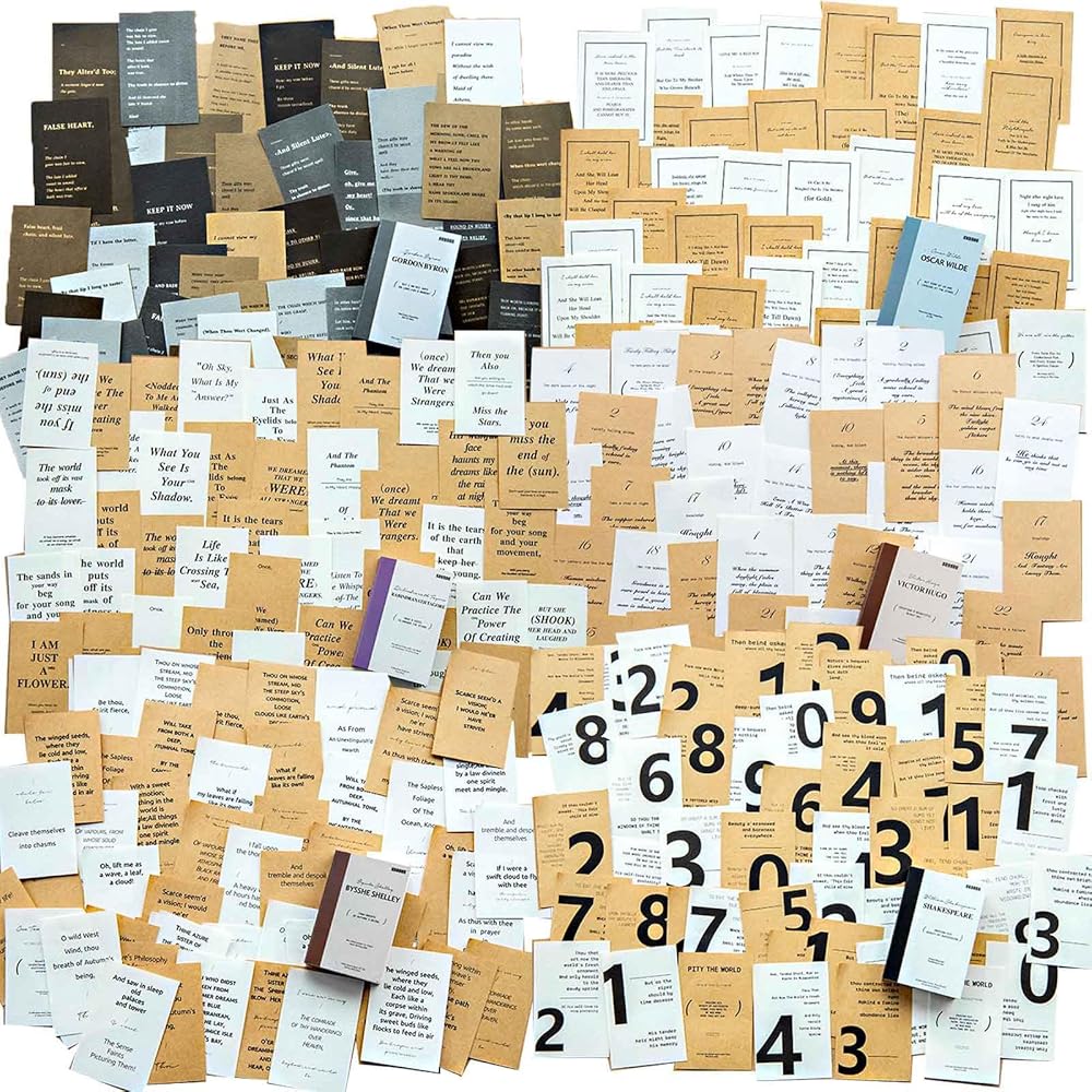 Discover the Beauty of Words - Delve into our Selected Poems Series with 600 vintage scrapbook papers, featuring six themes: Byron's, Shakespeare's, Tagore's, Wilde's, Shelley's, and Hugo's selected poems. Each theme includes 100 little book pages, perfect for adding a touch of classic elegance to your journaling, scrapbooking, or collage projects.