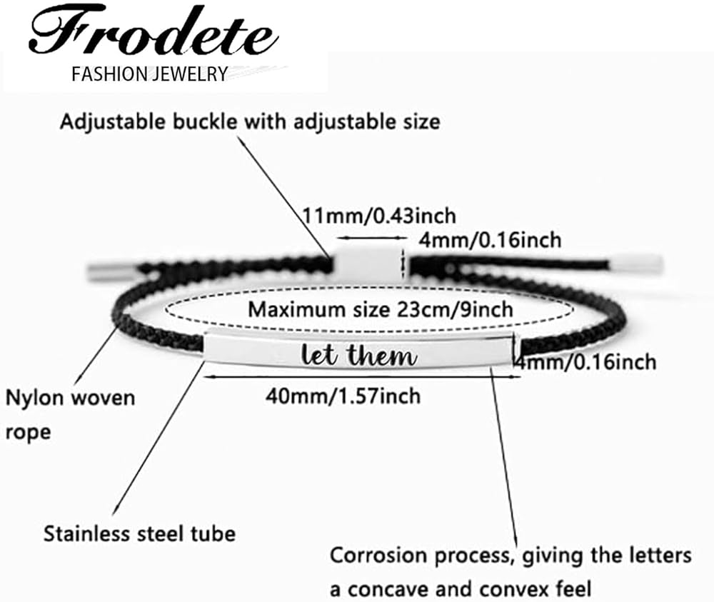 Let Them Bracelet for Women Inspirational Bracelet Adjustable Braided Rope Tube Bracelet Handmade Engraved Motivational Bracelet for Sisters Inspirational Friendship Bracelets