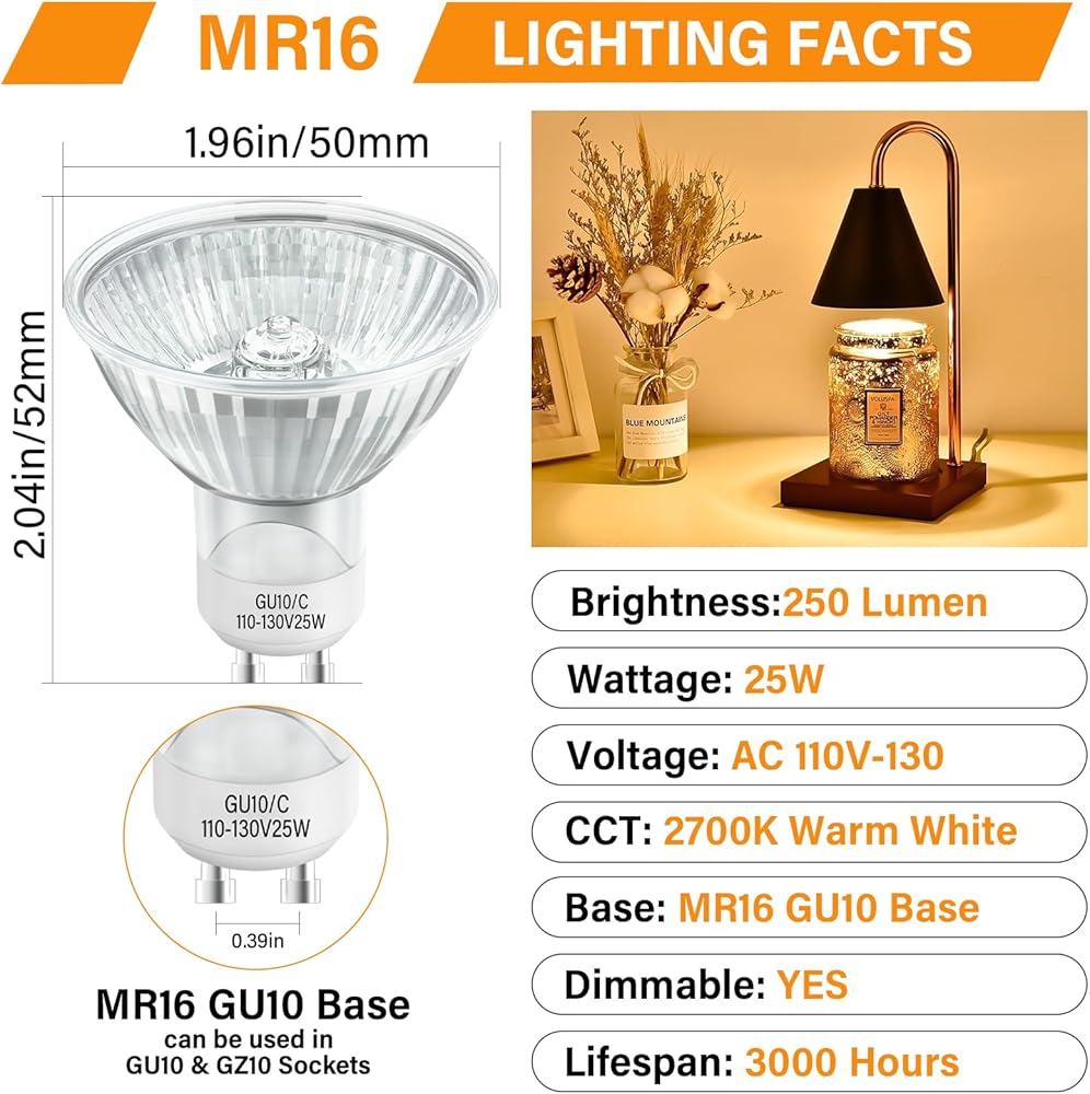 【NP5 Replacement Bulbs】GU10 halogen 25w bulbs use a concentrated halogen beam to melt scented jar candles without overheating or under heating, gently release fragrance throughout your home.