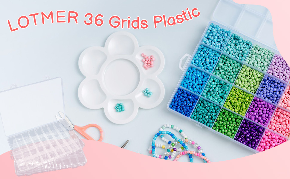 36 Compartment organizer box: Plastic compartment storage container can store smaller items well, and the partition lines of the compartments are aligned under the edges of the lid and bottom, keeping small items in place and not spilling into other compartments.