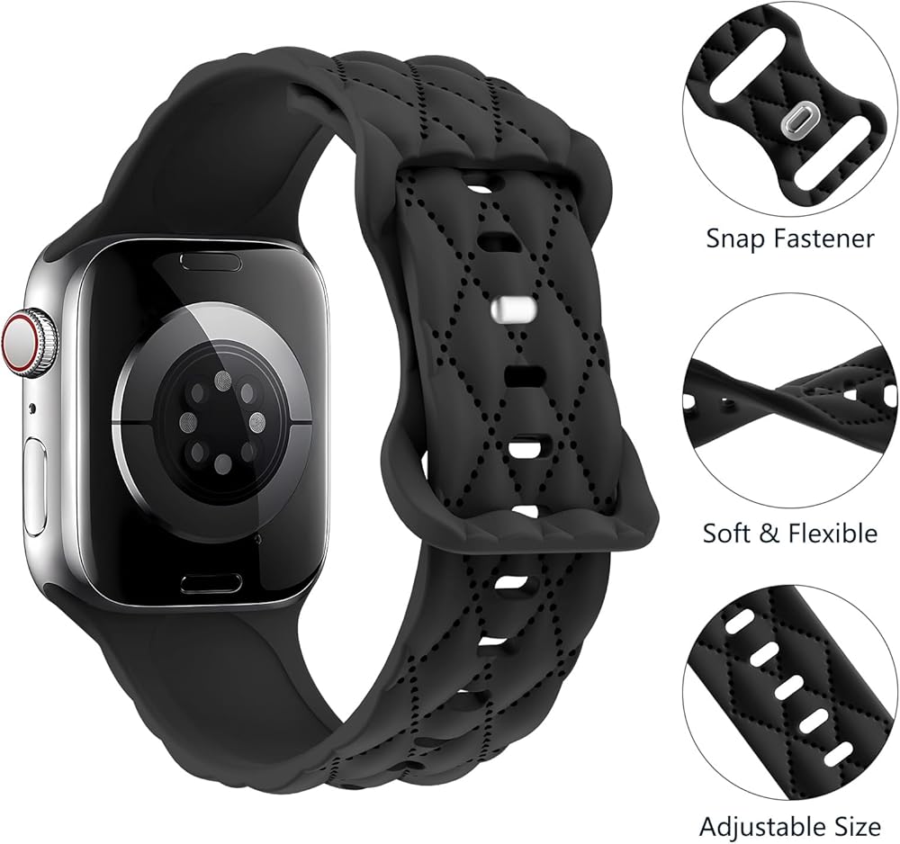 【Compatible Models & Size Options】: MYAPULUA silicone Cute Matelasse Engraved bands are compatible with Apple watch 38mm 40mm 41mm 42mm 44mm 45mm 49mm,series 9,series 8,series 7, series 6,series 5,series 4,series 3,apple watch se 2nd,se,Ultra,ultra 2,iwatch bands series 2,series 1,all versions.The different size options for the wristbands, with the 38mm/40mm/41mm fits for 5.51-7.87 inches (140mm-200mm) wrists; and the 42mm/44mm/45mm/49mm fits for 5.9-8.27 inches (150mm-210mm) wrists.