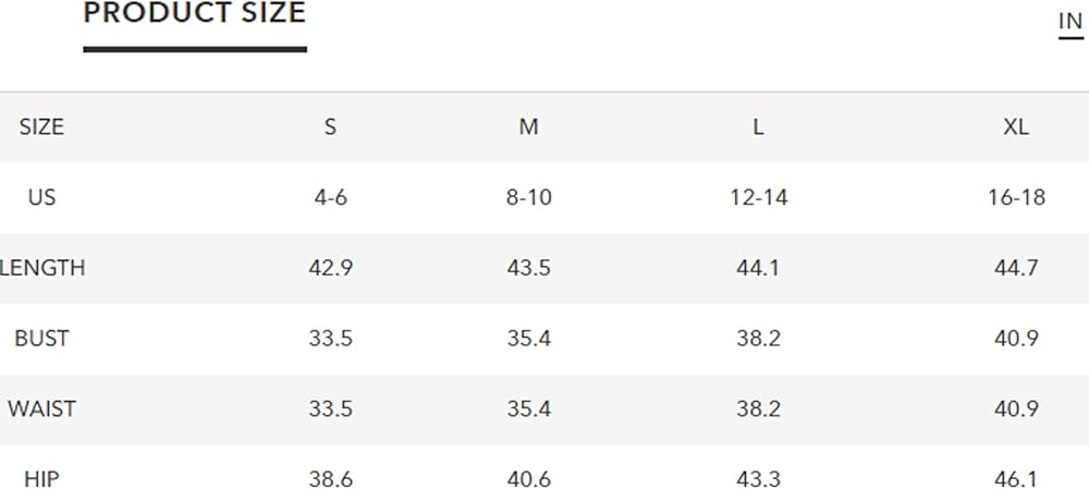 [Perfect Sizing]: Available in S=US(4-6), M=US(8-10), L=US(12-14), XL=US(16-18). Please refer to our size chart for specific measurements to achieve the perfect fit.Model Wearing Size S: Height: 5'6'' in / 168 cm,Bust: 34 in / 86 cm,Waist: 25 in / 63 cm Hips: 30 in / 76 cm.