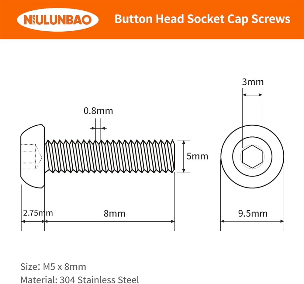 Package Included: 50 PCS Button Head Socket Cap Screws (M5 x 25mm)