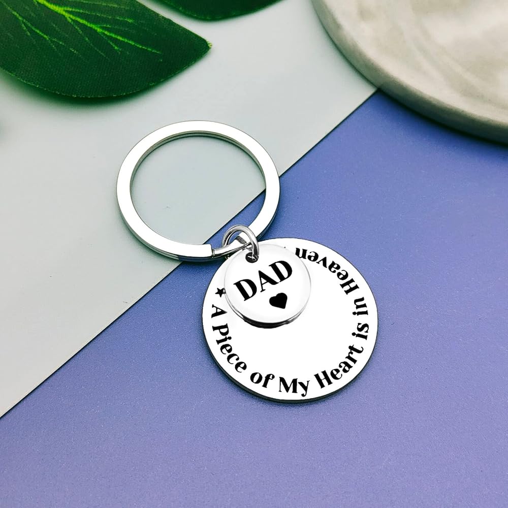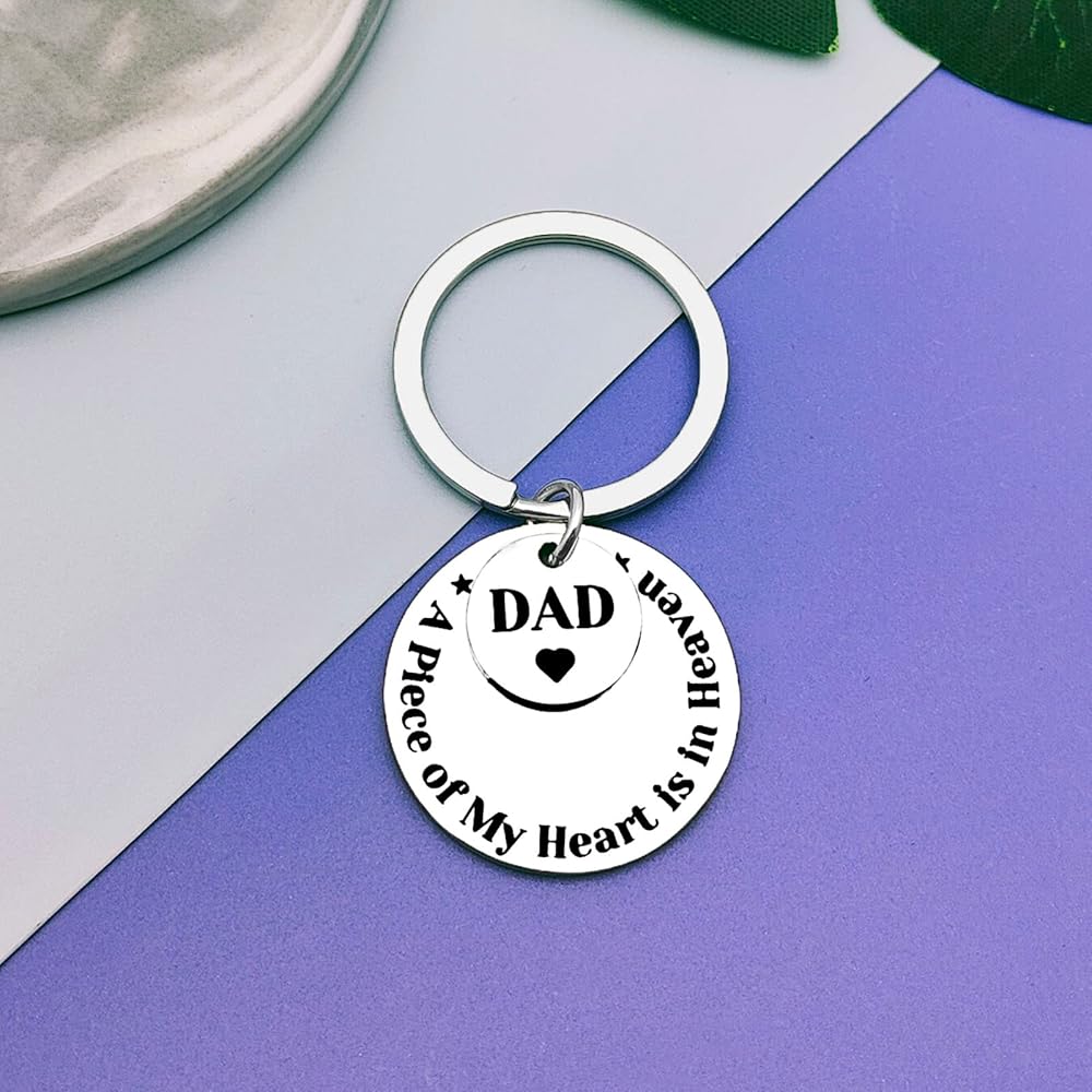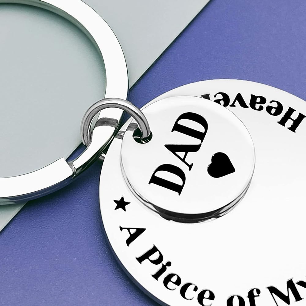 【Loss of Father Gift】This keychain is engraved with warm words--”A piece of my heart is in Heaven - DAD”. Buy this sentimental gift for son or daughter that has to deal with the death; remind how much you care. These words will give comfort for loss and grief. This memorial Keychain makes a sympathy memorial gift for a girl or boy. The person who receives it will be very satisfied and treasure it.