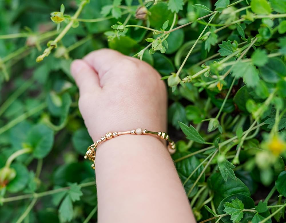 SIZING (ADJUSTABLE) – You will love our grow-with-me adjustable sizing. This allows your child to wear their favorite jewelry for a longer period of time. Please reference sizing chart. (Measures 4 – 4.5 inches and fits average 0-12 months)
