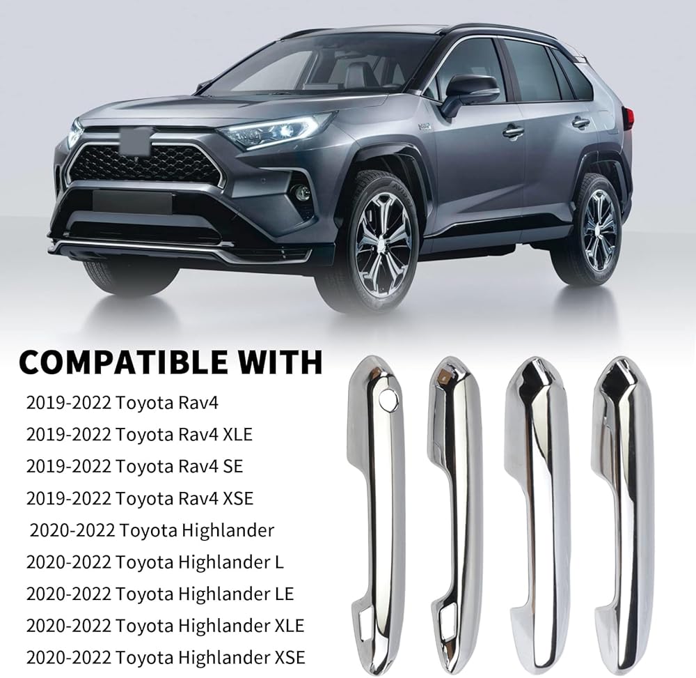 Door Handle Cover Trim Compatible With Toyota Rav4 XLE SE XSE 2019-2025 For Highlander L LE XLE XSE 2024 2023 2022 2021 2020 Exterior Door Handles Accessories Decoration with Smart Key Holes Chrome