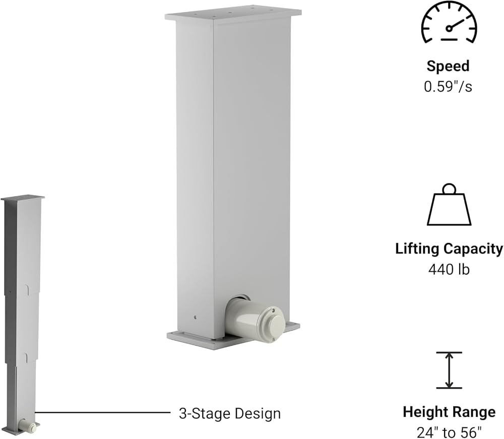 Customizable Configurations: The LG-07 lifting column is capable of producing up to 440 lbs in the silver color. Customize into a variety of different configurations to handle any home automation setup.