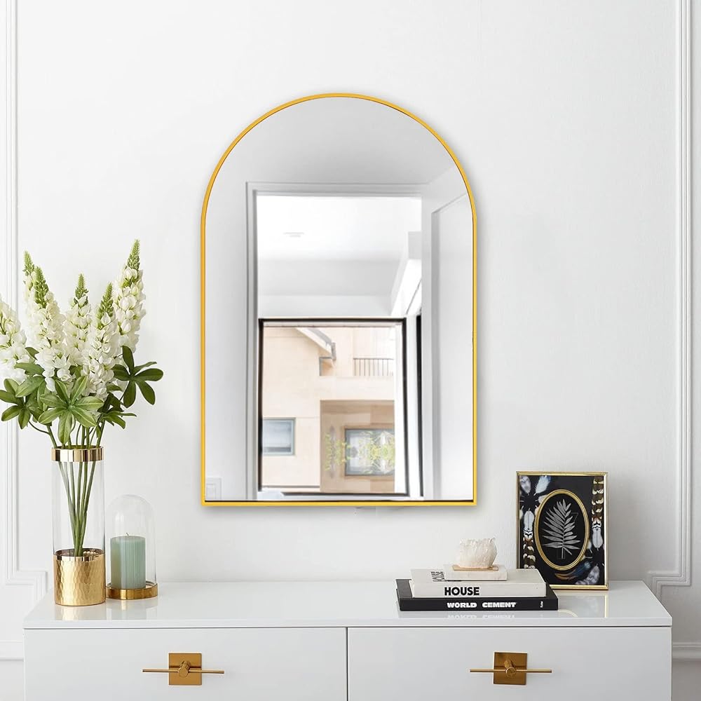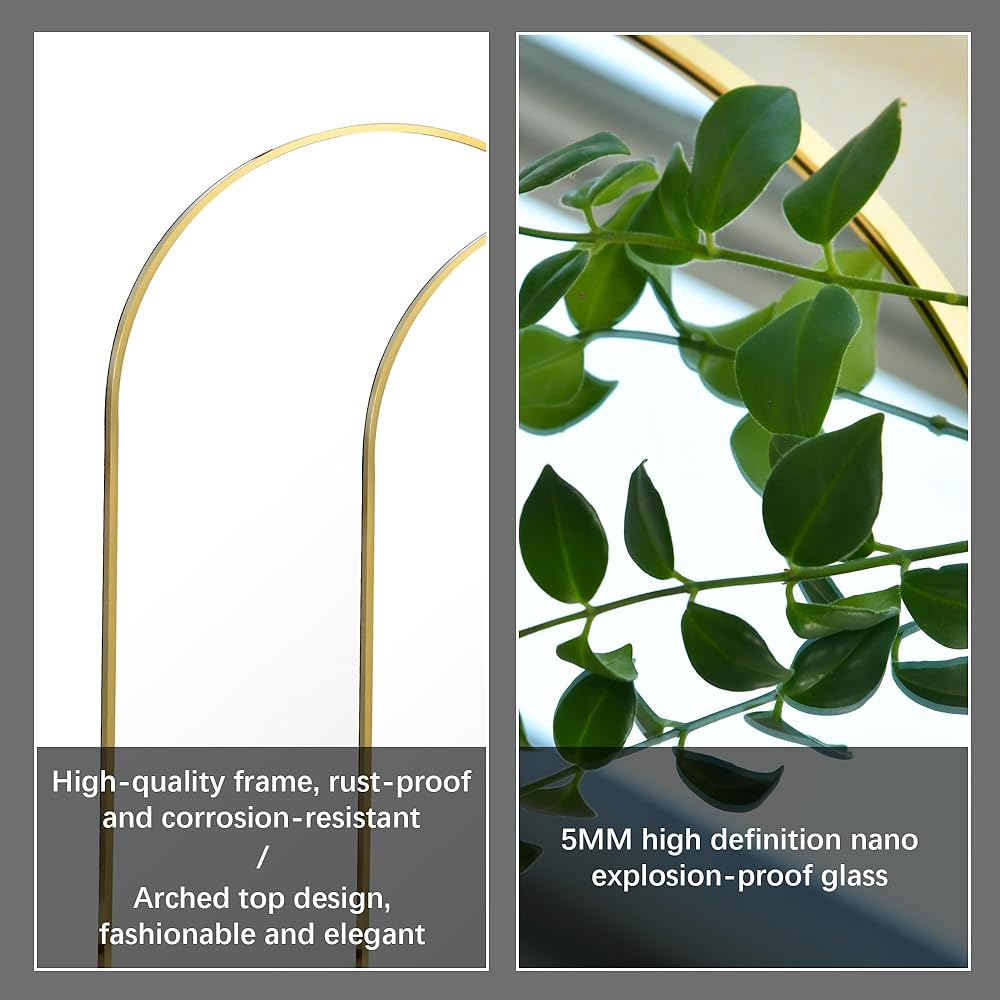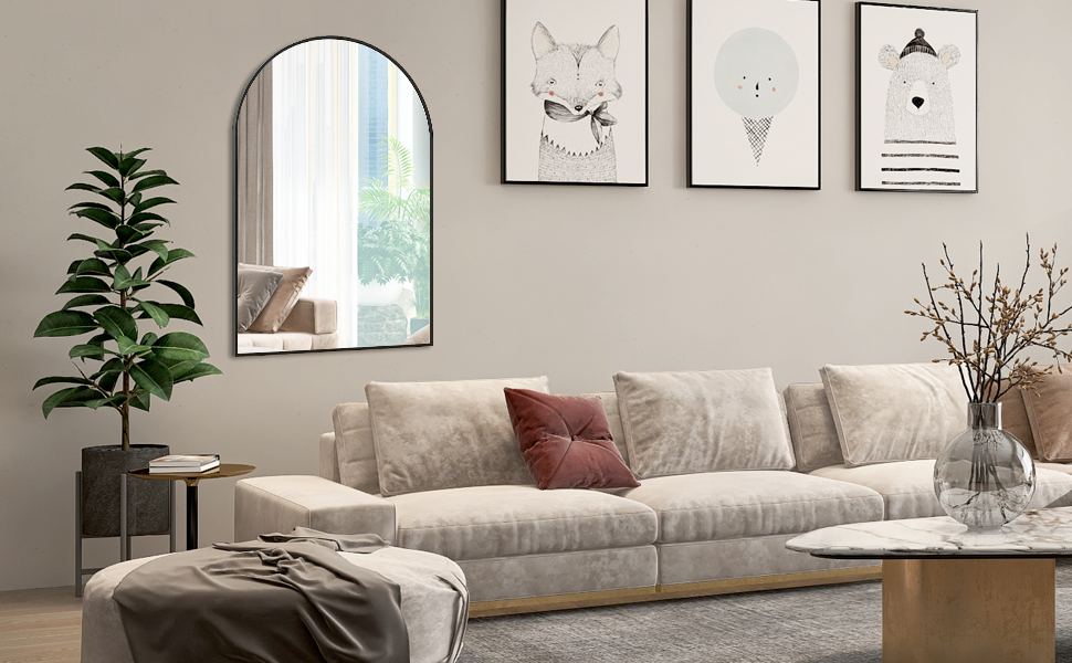 Arched Design: The unique arch design on the top of the mirror makes your room look more elegant and chic. The mirror frame is made of aluminum alloy which maintains pristine good looks with low-maintenance durability