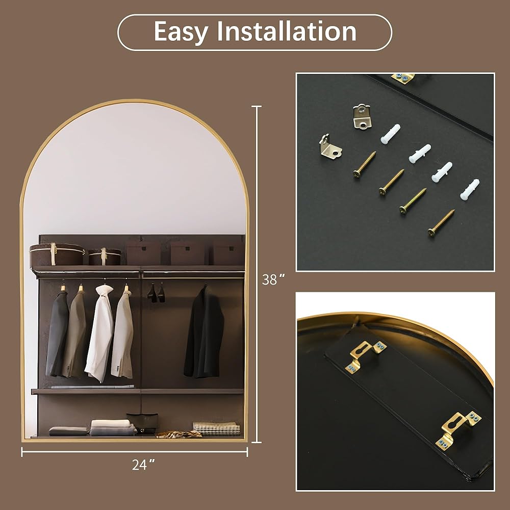 Easy Installation: This arch wall mirror is very easy to assemble. We will provide an installation manual and assembly tools, including four screws and 2 hooks, to help you complete the assembly in a faster time