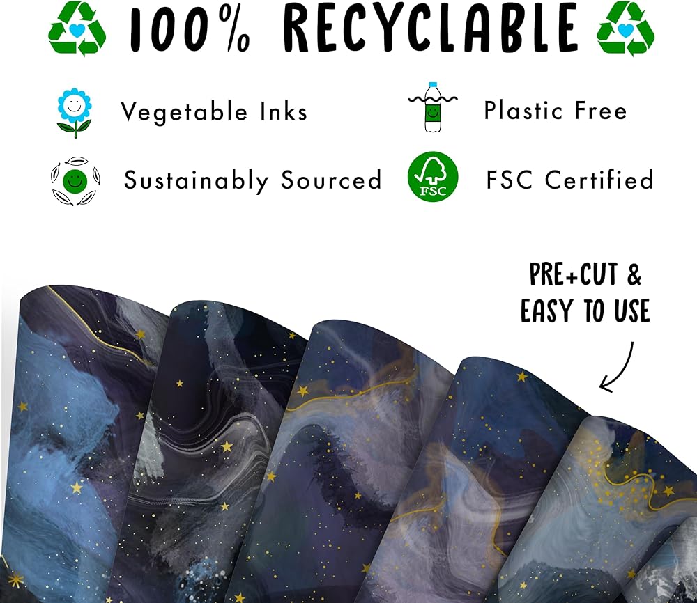 CENTRAL 23 Galaxy Wrapping Paper - 6 Sheets of Birthday Gift Wrap - Space Wrapping Paper - Blue Black - Recyclable - For Birthday Christmas Halloween Thanksgiving