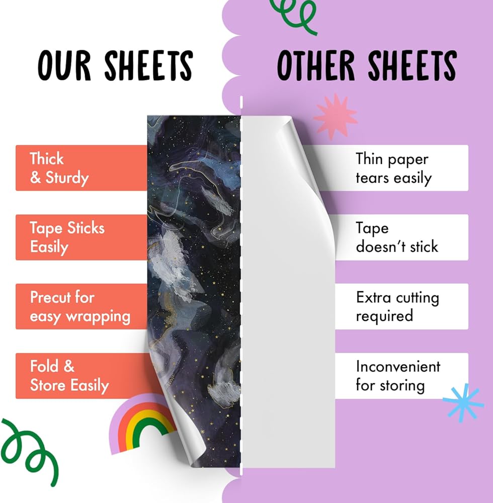 🎁 6 GIFT WRAP SHEETS - Large wrapping paper sheets, this set includes 6 folded sheets of 27" x 19" paper - perfect for birthday presents for friends, scrapbooking or for decorating!
