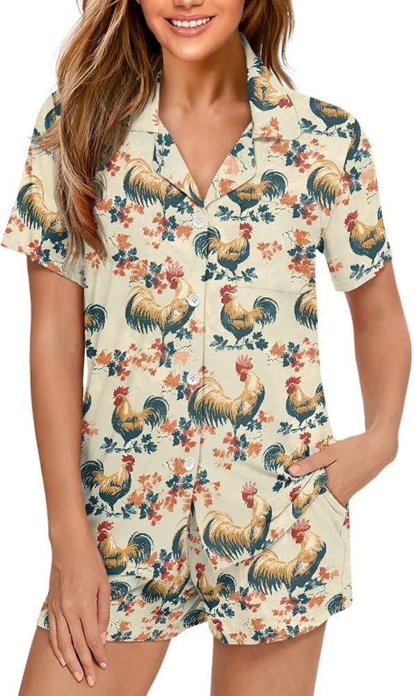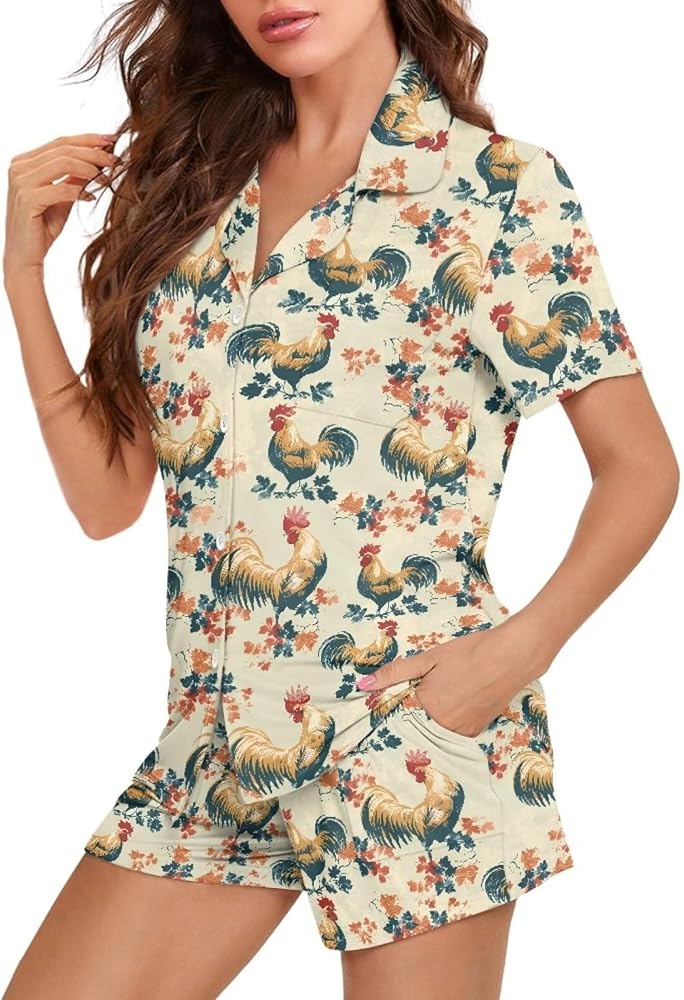 Features: Two piece comfort pajama set. Short sleeve top, button-up top lets you wear it open or closed, allowing you greater freedom of movement. Short pants with two pockets. Relaxed cozy pajama pants have an elastic waist, fits for any body size and makes relaxing as comfort as possible.