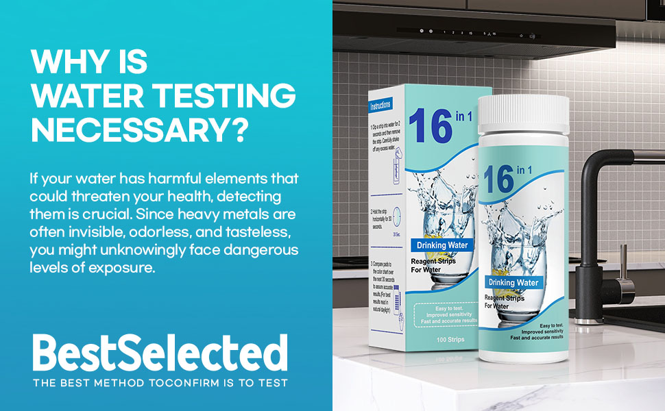 Flexible Utility - Water Testing Strips: Tailored for extensive assessment, our 16-in-1 drinking water test strips serve a diverse range of users, including homeowners, experts, and laboratories. Regardless of whether it's well water or tap water being tested, our water tester for drinking water is compatible with multiple water sources, delivering dependable outcomes to ensure confidence in water quality.