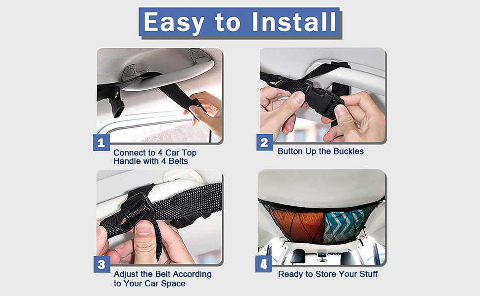 • 【لا توجد عوائق للرؤية الخلفية】ترقية شبكة البضائع السقفية الخاصة بنا باستخدام رباط وحزام إبزيم قابل للتعديل لتسهيل الإعداد والتركيب في السيارة، يمكنك ضبط طول الحزام ليناسب حجم سيارتك بشكل أفضل وشد الرباط لحمل العناصر لأعلى و بعيدًا عن المقعد، ولا يتدلى لمنع رؤيتك في مرآة الرؤية الخلفية.