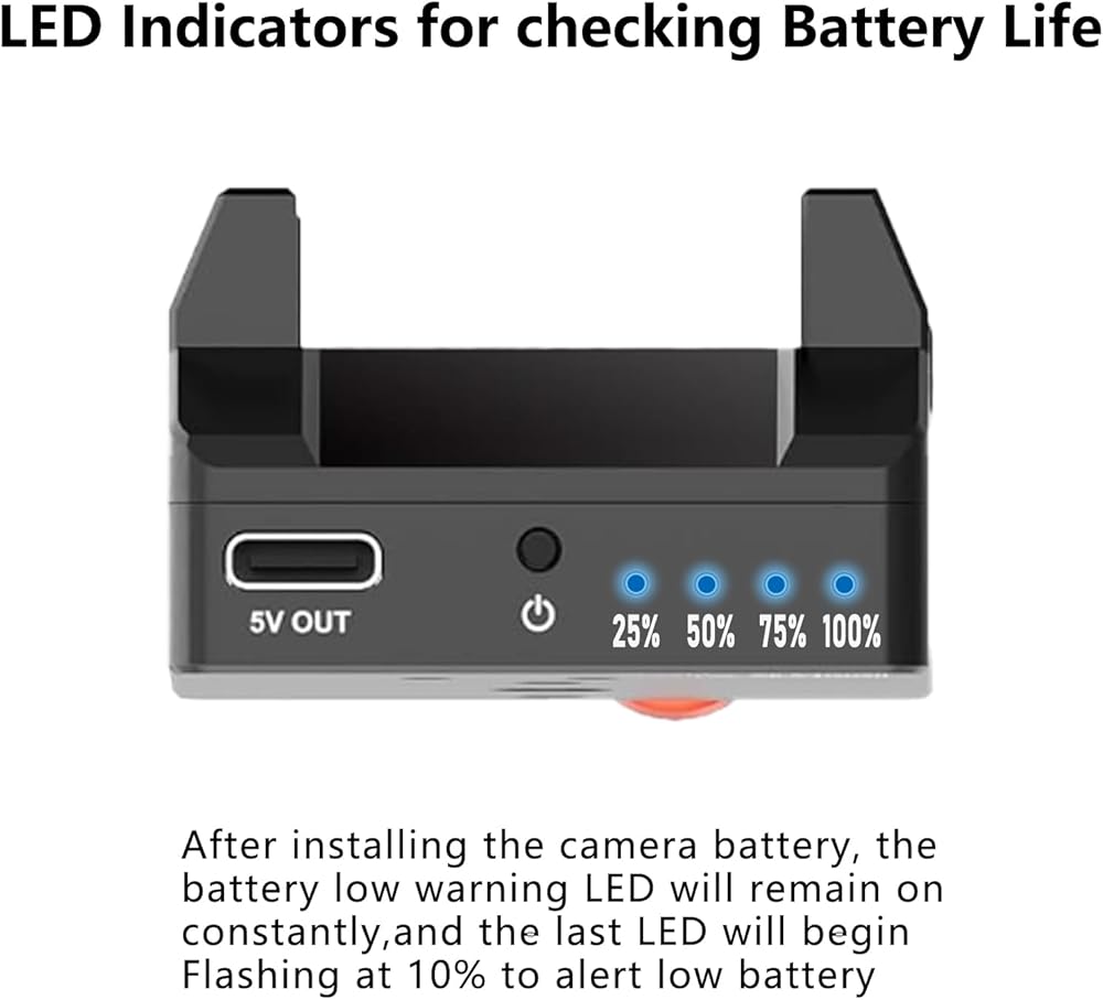 NP-F Battery Adapter Mount Plate for Wireless HDMI Transmitter and Receiver, NP-F Battery Adapter Mount Plate Compatible with Most of NP-F Battery, LED Low Battery Indicator