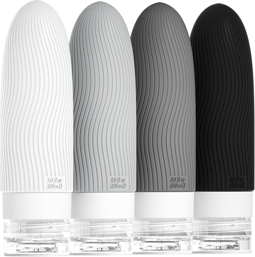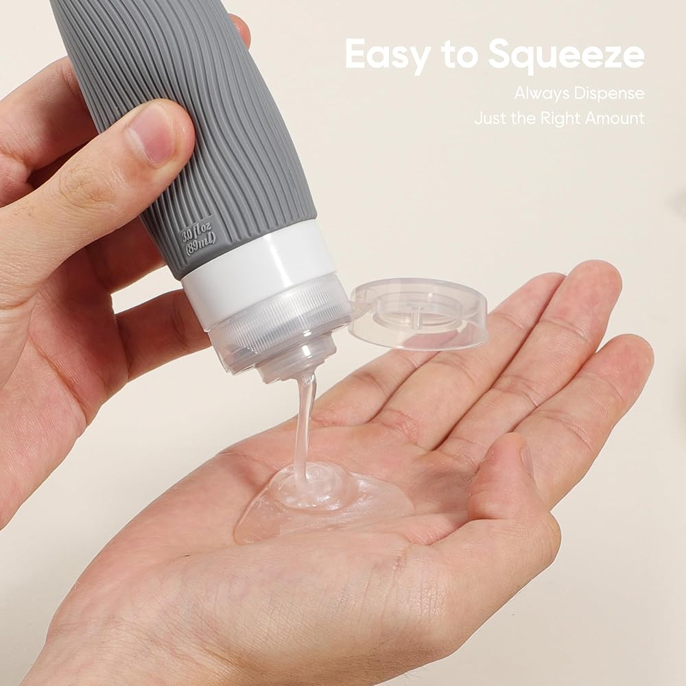Soft Squeezable Silicone Bottles - Made of BPA free food-grade silicone, they are not only soft, flexible, and comfortable to the touch, easy to squeeze,but the strip design make it easy for grip, preventing the bottle was falling out of ones hands while in the shower. Eco-friendly travel bottles set is good to our environment, and providing you a please travel experience.