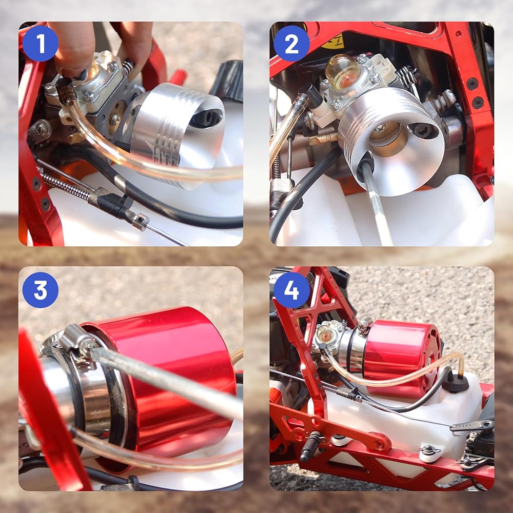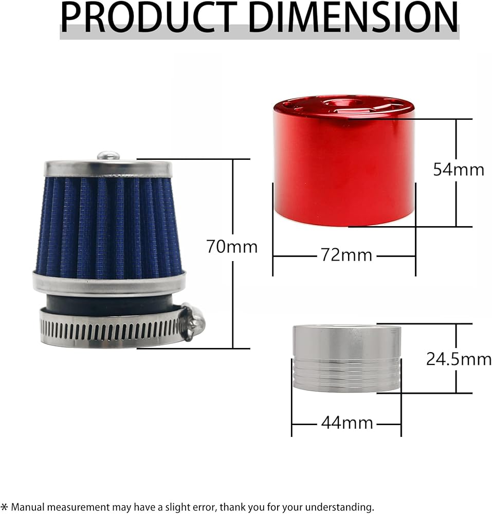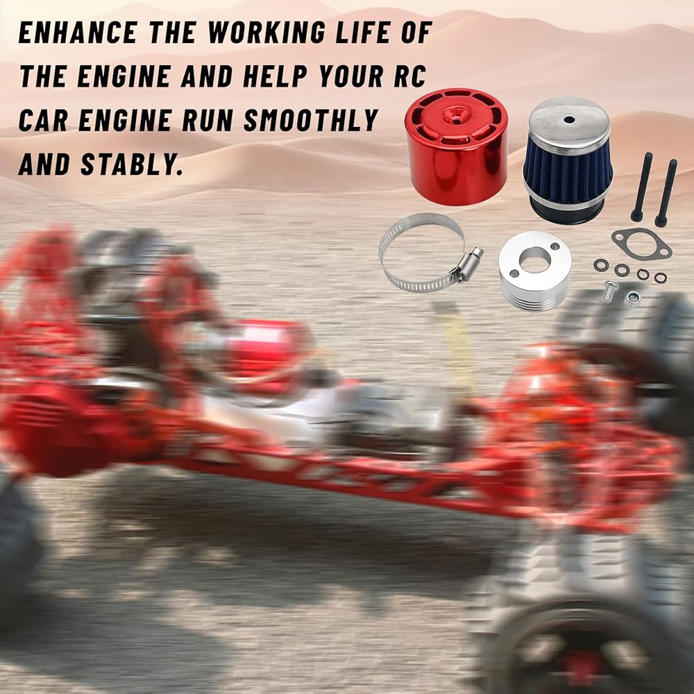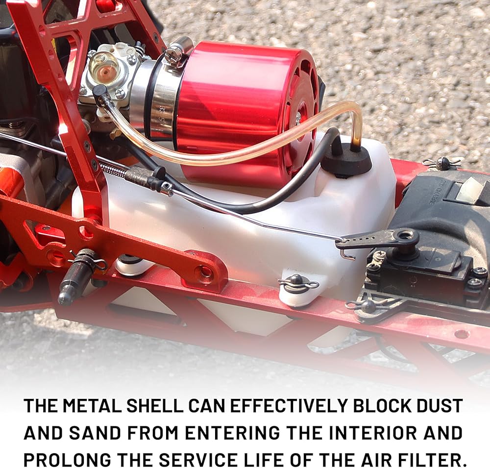 The contents of this product kit are shown in the first picture. The length is 55mm ≈ 2.17inch and the width is 72mm ≈ 2.84inch.Unique aerodynamic design, compared to traditional air filter products you can effectively prevent sand from entering the engine, so as to better protect the engine performance.We use high quality metal as the raw material of this product.The red color has a lively and beautiful appearance that can easily make people's eyes fall on it.Suitable for Zenoah, CY, TOPSPEED RC WORLD Engine,Fit for 1/5 Baja 5B 5T 5Sc.We have a professional after-sales team, if you have any questions, please contact us in time, we will solve your problems within 24 hours.