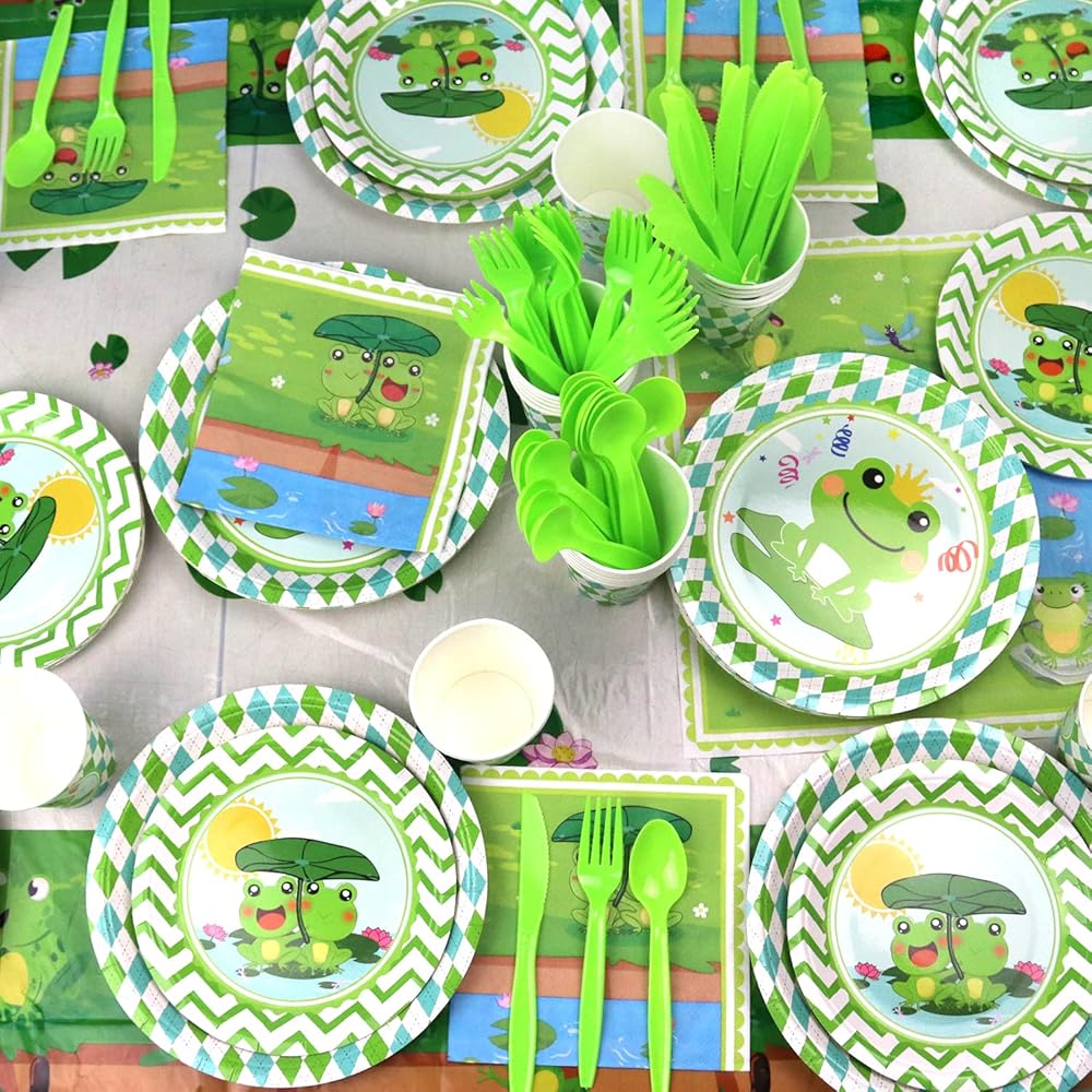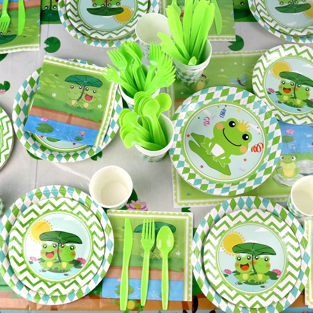 🐸Product Features: Our products are self-designed, with clear printing, very unique and exquisite, giving you a unique experience.This frog party set can decorate your kid's birthday party and your everyday life. This cute little green frog print puts everyone in a good mood
