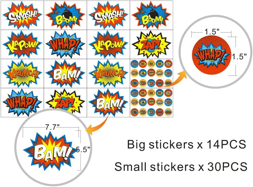ADJOY Superhero Party Supplies Sticker Good decorations to ADJOY Superhero Capes Superhero Power Words sticker with superhero action signs It do have great ADHESIVE. money back if you not satisfy!