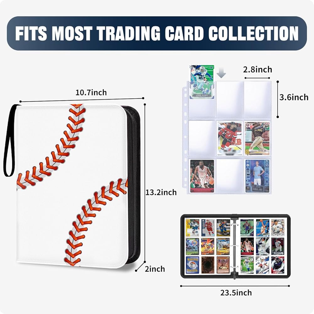 【900 Pockets Trading Card Binder】 4-pockets card binder comes with 900 card pockets, including 50 removable card sleeves(double-side pocket). it will hold and protect more of your valuable and cherished cards. The size of the card slot is 3.6 x 2.8 inch, fits most standard-sized cards, ensures your favorite cards securely stored and neatly organized.