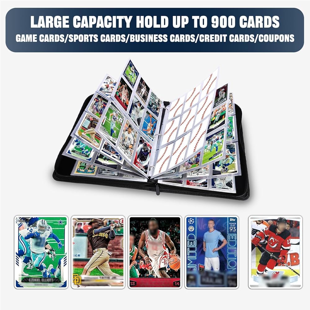 900 Pockets Baseball Card Binder, Trading Card Holder with Sleeves Card Collectors Album, Fit for Baseball Cards Football Basketball Soccer Hockey Sport Trading Cards MTG and Other TCG