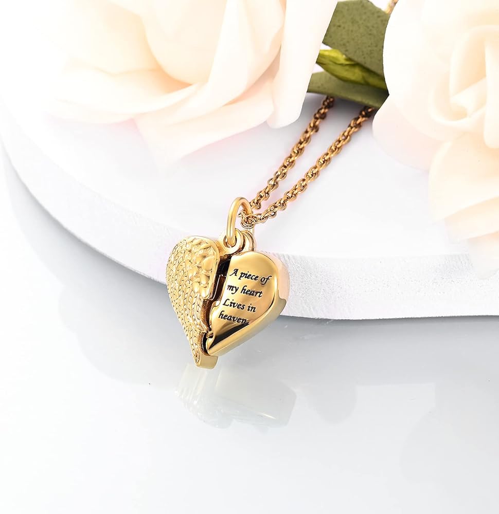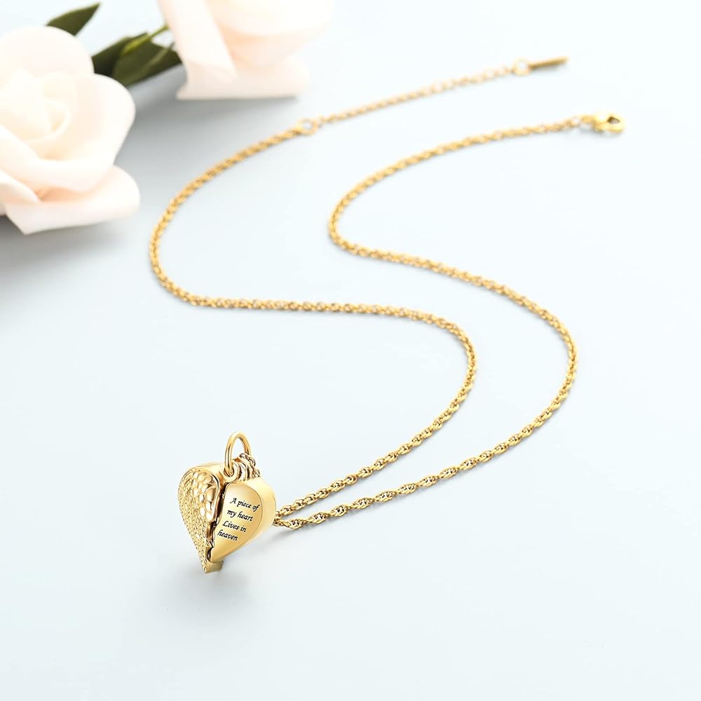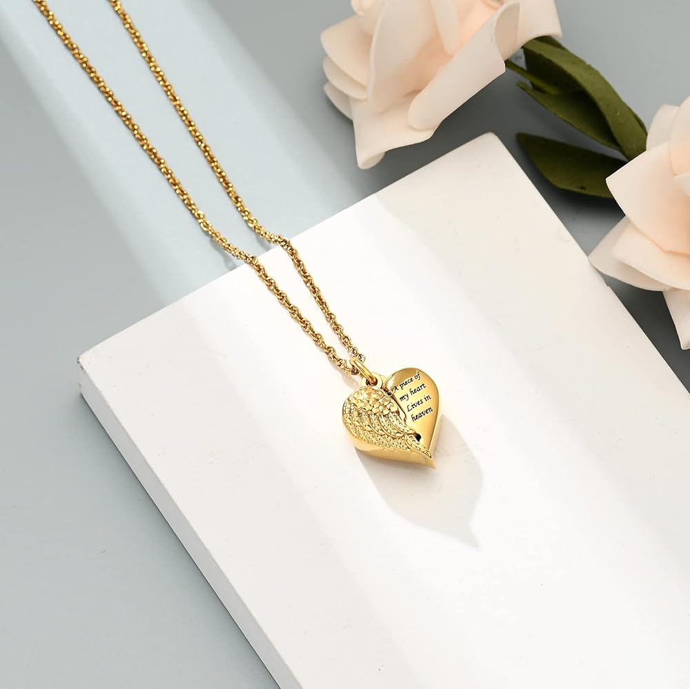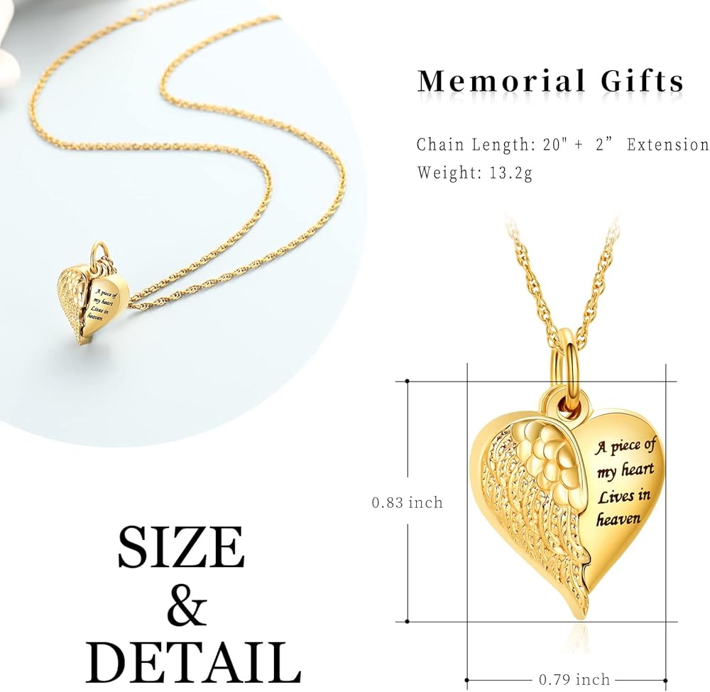 shajwo Cremation Jewelry Heart Urn Necklace for Ashes for Women Angel Wing Memorial Keepsake Birthstone Pendant