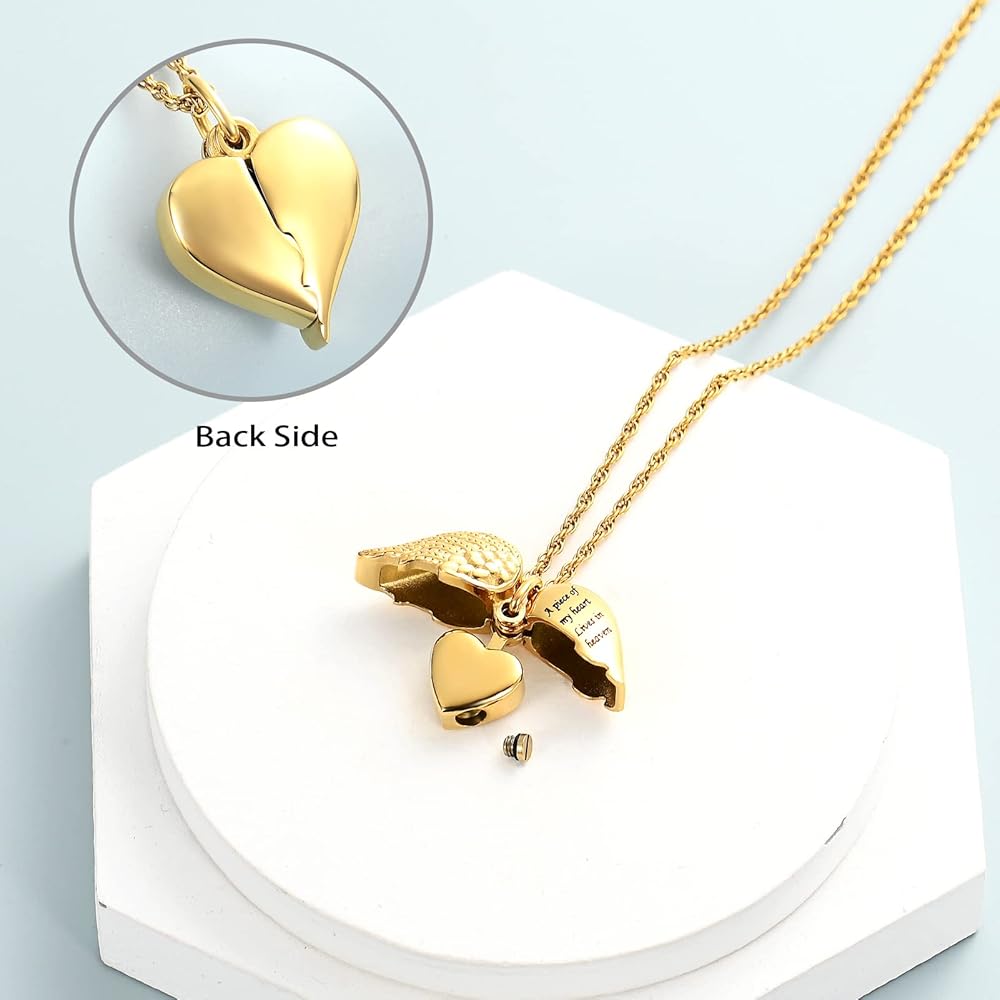 • 【Material】Made of stainless steel, special Angel Wing Heart urn necklace with open style design, durable,waterproof, elegant and fashionable, makes you more attractive.