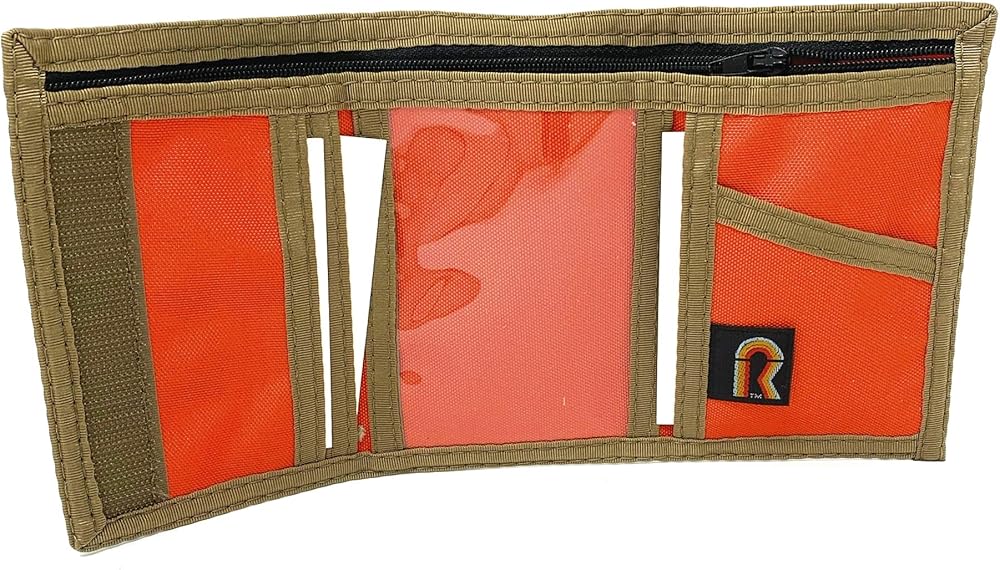 This high quality Trifold Hook & Loop Wallet is made in the USA by the company that invented the original Hook & Loop wallet. Two clear vinyl pockets, one on the exterior and one on the interior, hold your ID for easy visibility and quick access. A zippered pouch runs the entire length of the wallet to secure your cash and other items. The wallet is made of durable 600 denier nylon Cordura and double stitched for years of use.