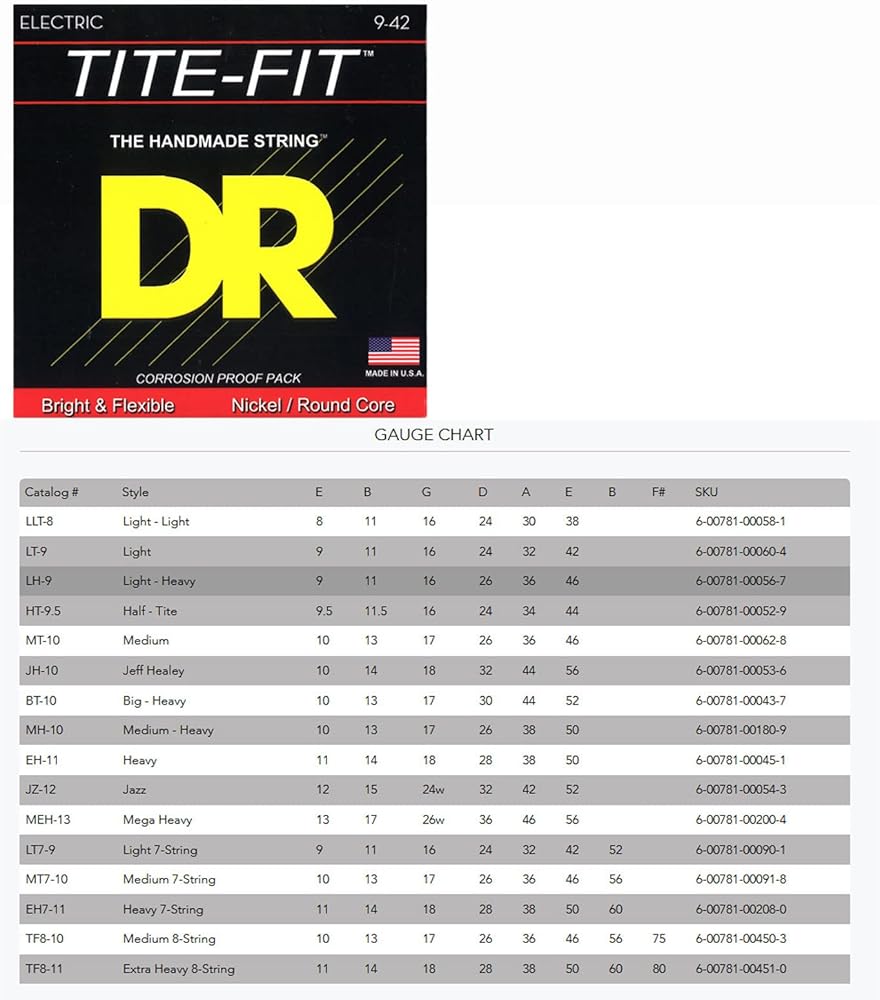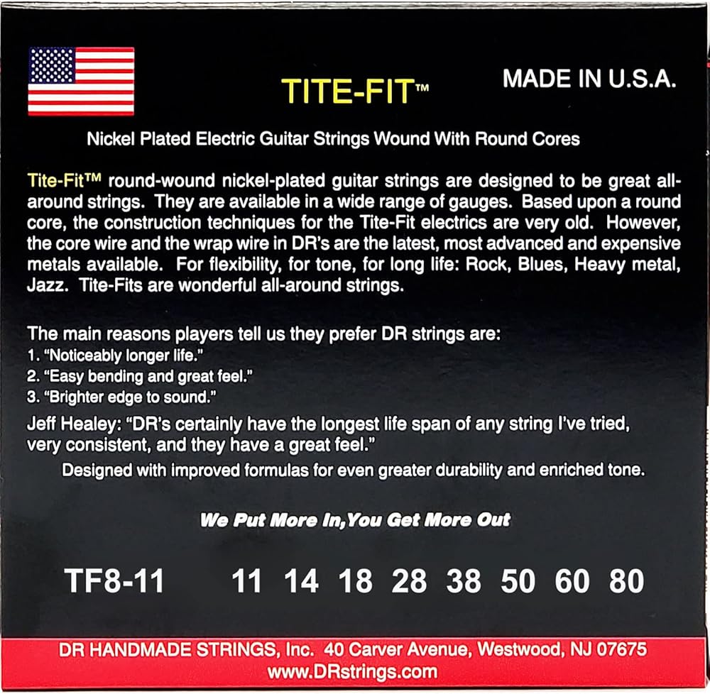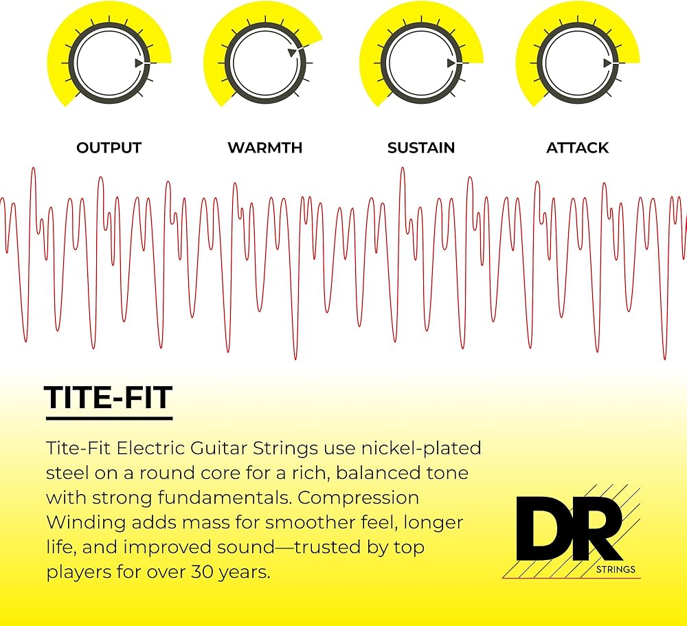 Tite-fit electric guitar strings utilize a nickel-plated steel wrap wire wound on a round core Wire to produce a fatter sound. This classic construction makes tite-fit a great all-around string that works for a range of styles and genres, including rock, blues, metal and jazz. The use of the finest core and wrap-wire materials ensure this classic design meets modern performance standards.