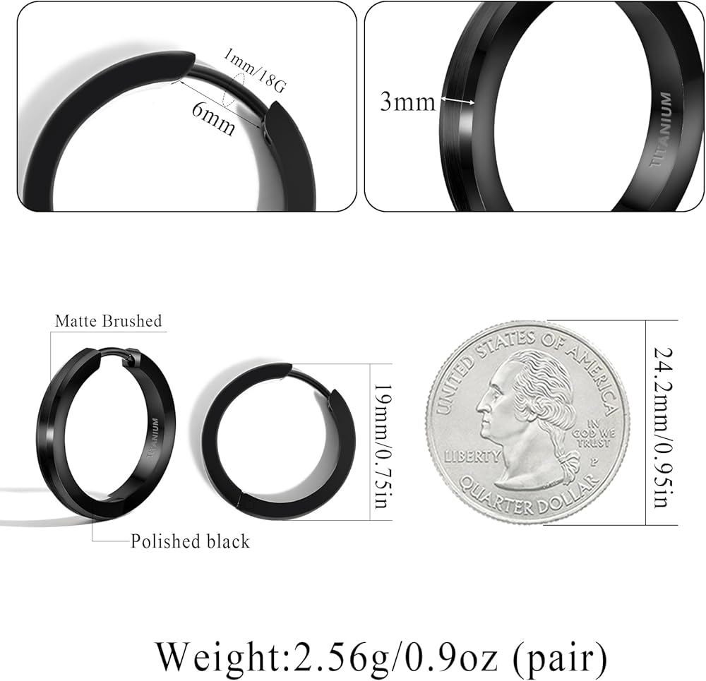 【SKIN-FRIENDLY MATERIAL】 All parts are made of pure titanium. Do you know pure titanium before? It is NOT TITANIUM STEEL or NOT TITANIUM ALLOY, only 0.6% of people react to earrings made out of titanium, which makes earring extremely hypoallergenic for sensitive ear, If you don't know it before, i encourage you to try at least one pair titanium hoop earrings