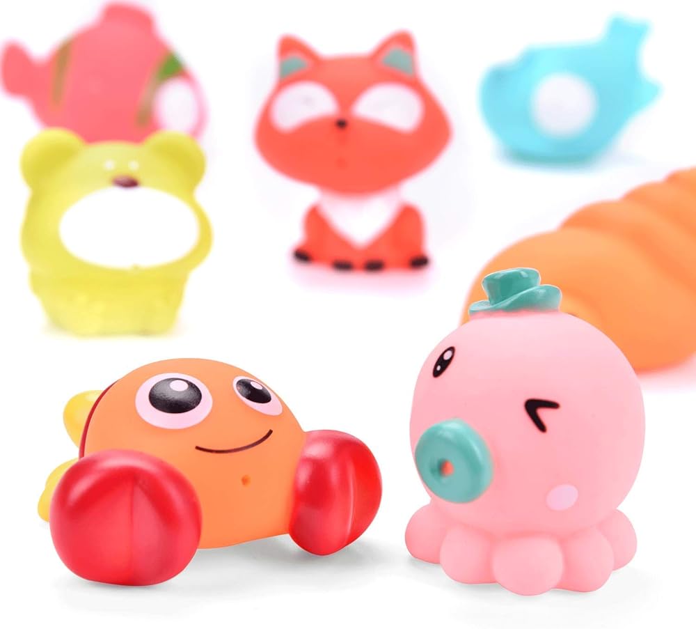Squeeze and Squirt: The little squirters are designed for little hands to grab, grasp, and squeeze! The squirters feature vibrant colors and are floatable! They can be immersed underneath the water to fill up the toys in full and then squirt out the water for fun!