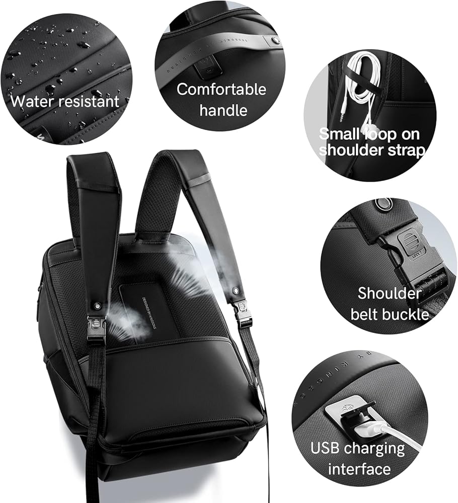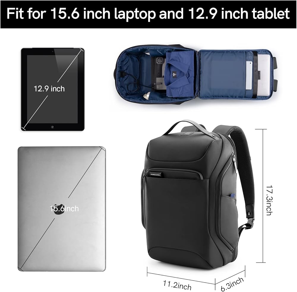✈ LOTS OF STORAGE SPACE & COMPARTMENT: The backpack has 8 pockets, the spacious main compartment can hold many things,can hold a 15.6" laptop, reasonable pocket division can meet your daily needs,The bag can store some items used in the office. One of the double-sided pockets is an exclusive mobile power supply, and the other can be used to store water bottles, umbrellas, etc. There are mesh pockets inside, which meet the small items necessary for business office travel.