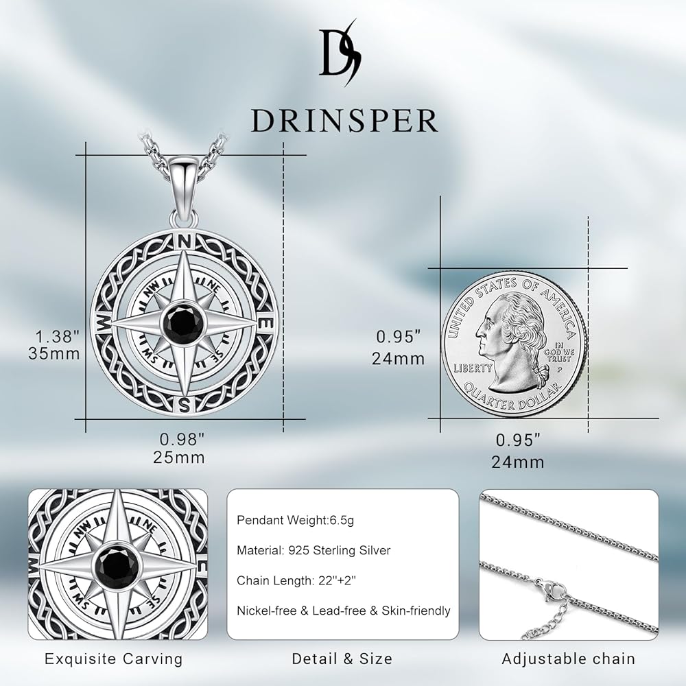 Compass Necklace for Women Men 925 Sterling Silver Celtic Knot Pendant Jewelry Friendship Talisman Travel Graduation Christmas Birthday Gifts for Her Him