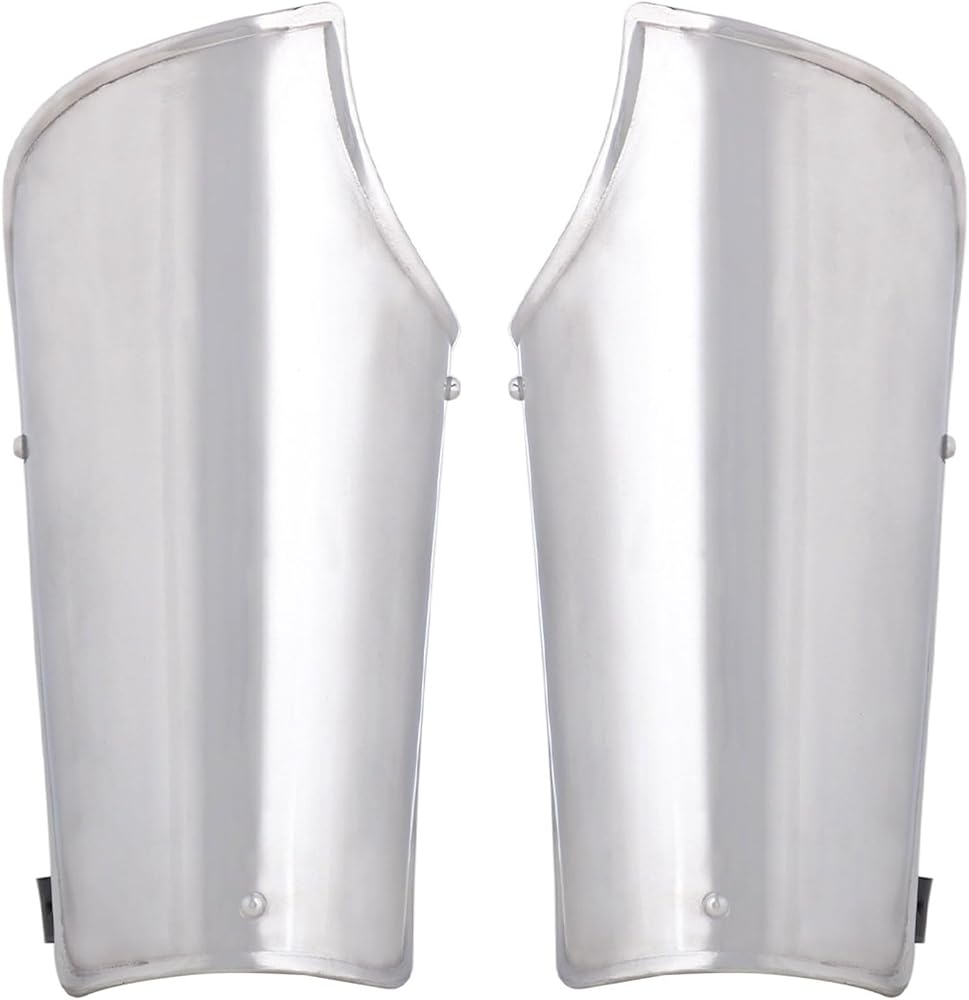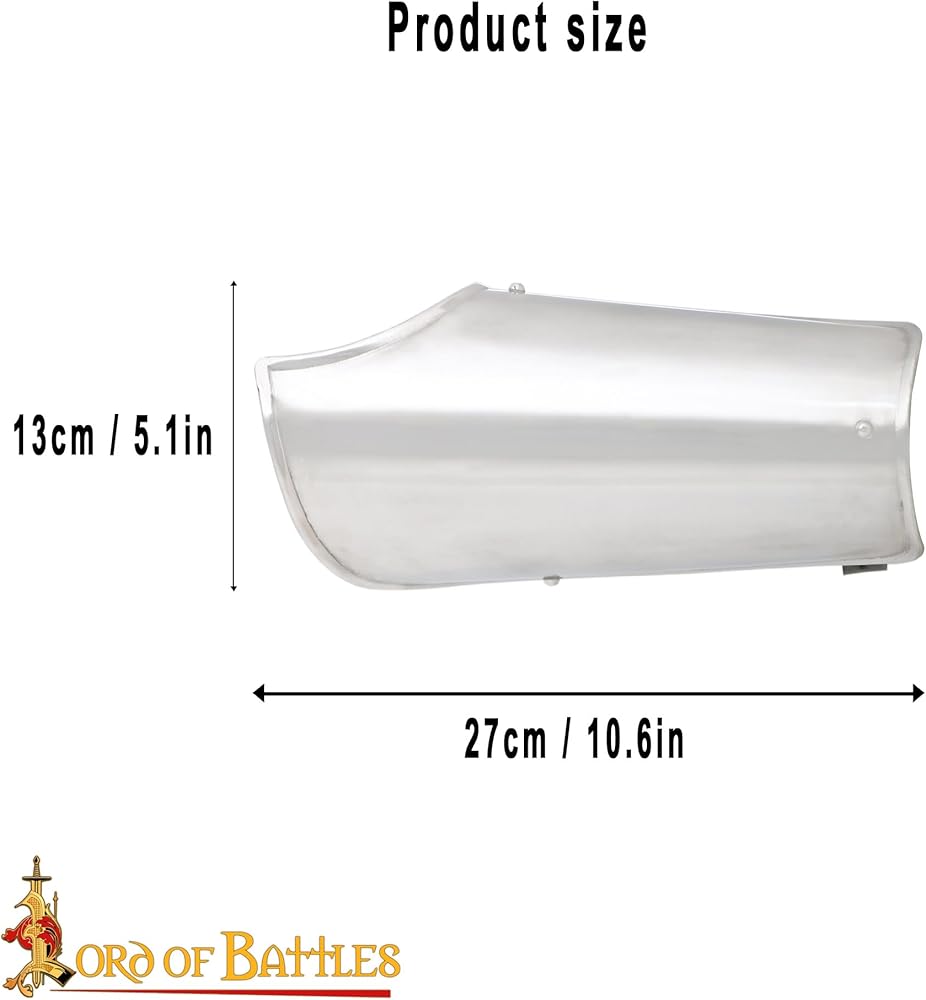 These bracers are handmade from tough 18 gauge mild steel, making them extremely lightweight, and ideally suited for LARP or medieval knightly costumes. These bracers measure about (27x13) cm. A pair of 3.5 mm thick GENUINE LEATHER equipped with steel buckles add to its adjustable and comfortable fit. ..