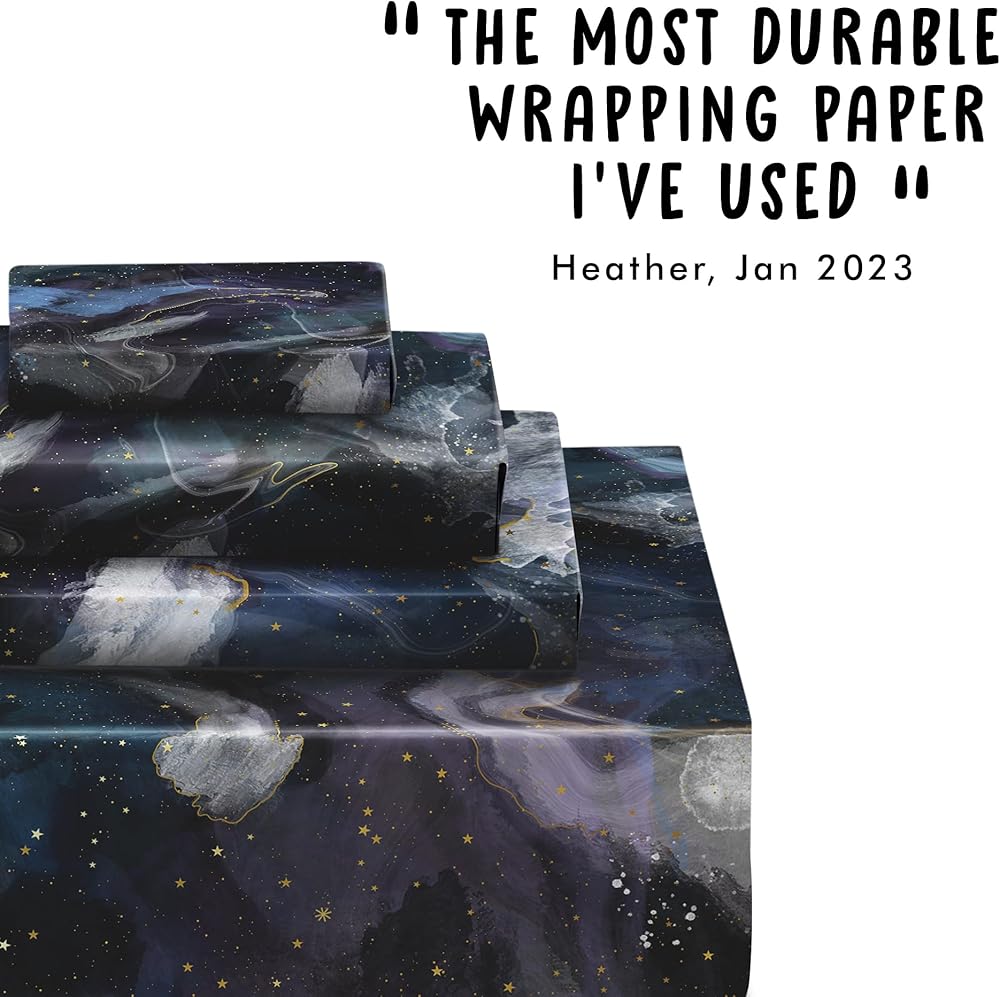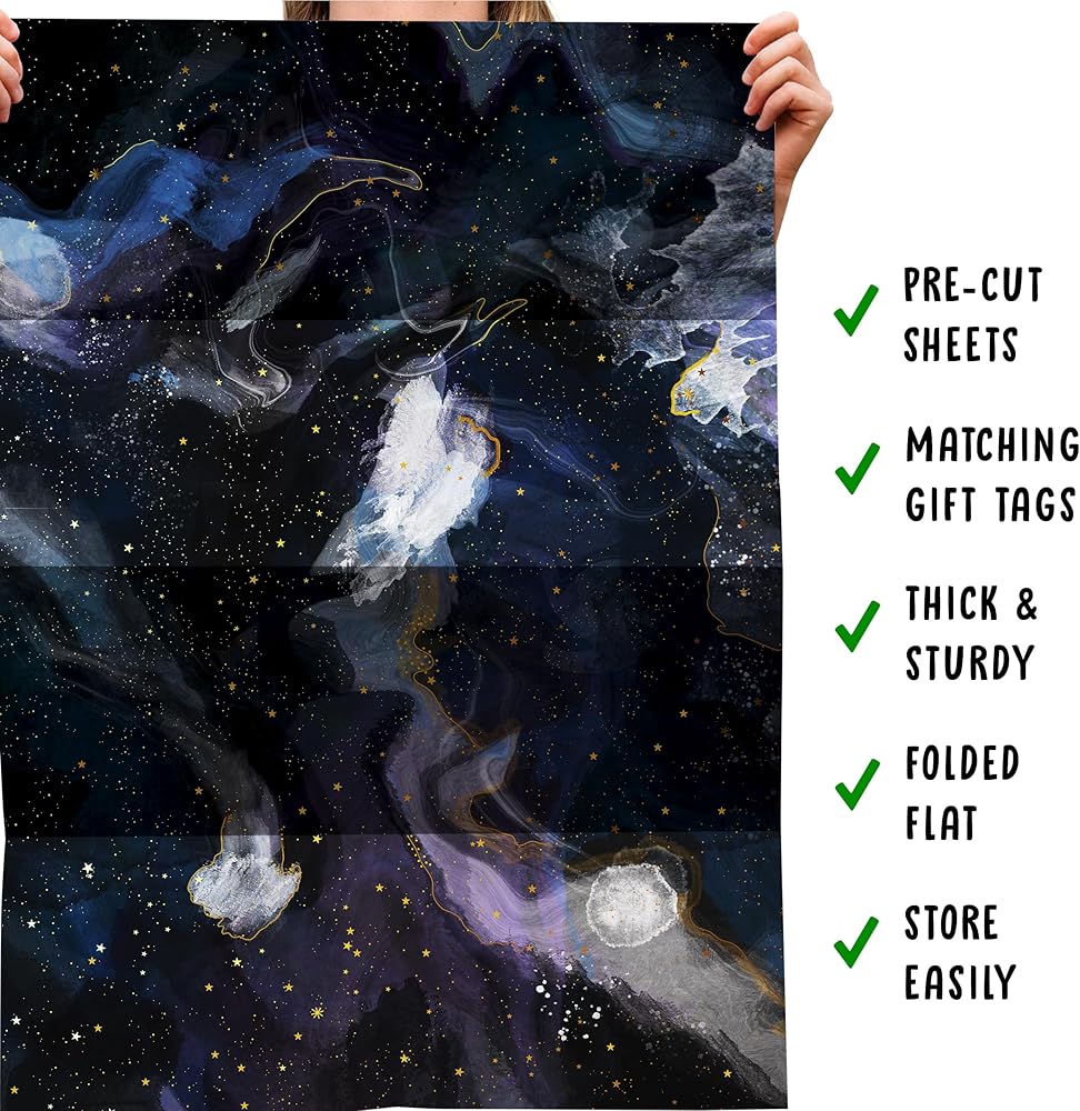 CENTRAL 23 Galaxy Wrapping Paper - 6 Sheets of Birthday Gift Wrap - Space Wrapping Paper - Blue Black - Recyclable - For Birthday Christmas Halloween Thanksgiving