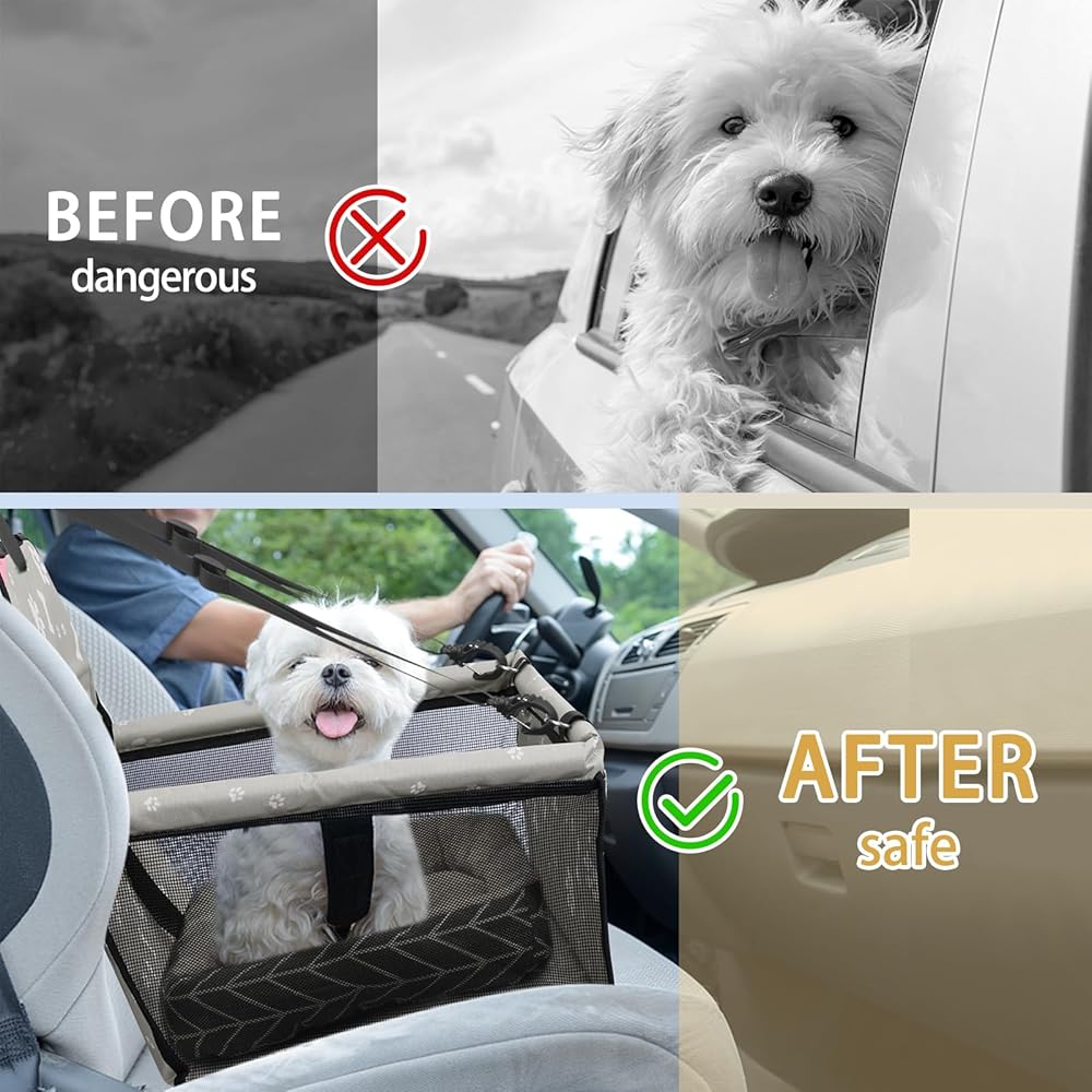 [السلامة] يحافظ مقعد السيارة المعزز هذا على بقاء كلبك في المقعد ويجعل الحيوان الأليف لن يزعجك أثناء القيادة. لن تقلق أبدًا بشأن الاهتمام بالحيوانات الأليفة أثناء القيادة، والمزيد من الأمان على الطريق! مقعد السيارة للحيوانات الأليفة ينطبق على جميع السيارات.