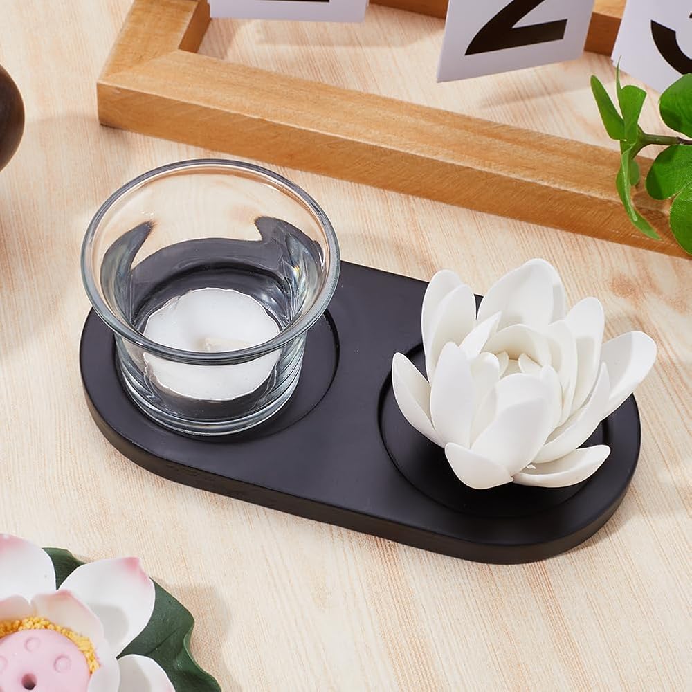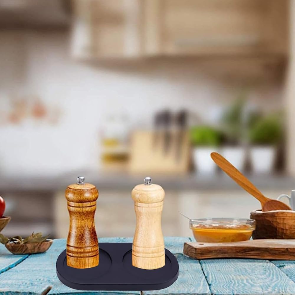 GORGECRAFT Black Wooden Salt and Pepper Mill Tray Acacia Wood Tray Peper Mill Holder Mills & Shakers Salt & Pepper Grinder Rest for 2 Mills Accessories Kitchen Storage Holder Home Decoration Crafts