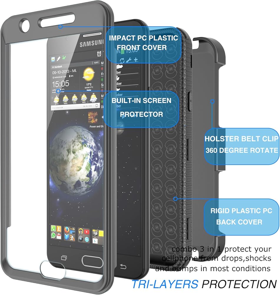 Case For Samsung Galaxy J7 Prime, Combo 3 in 1 Design, shock absorbing when your phone is dropping on the ground, Full access to user interface, camera lens, headphone jack, speakerphone and microphone. Built-in Screen Protector prevents scratches without compromising sensitivity.