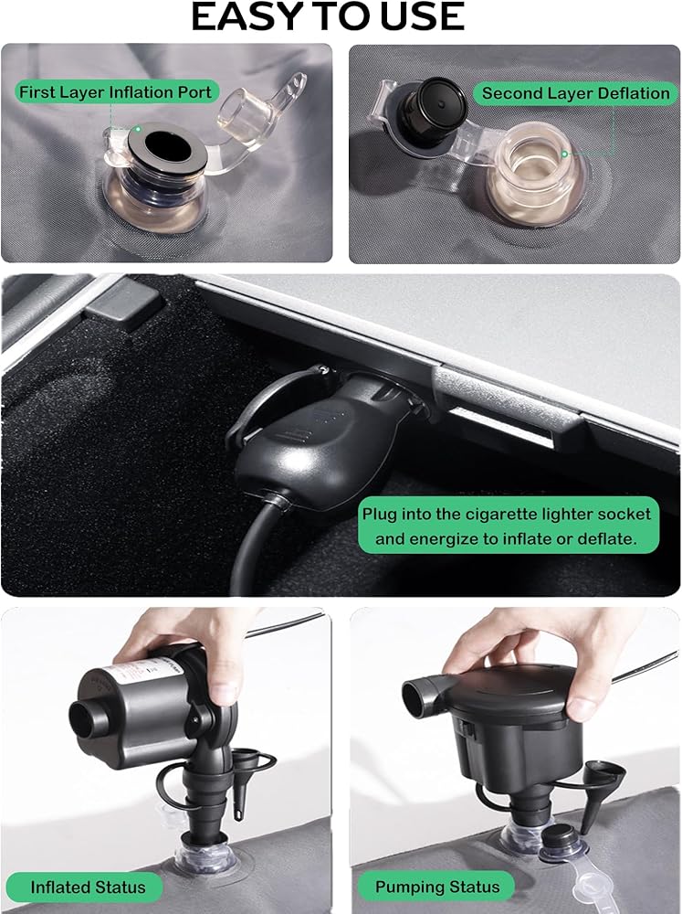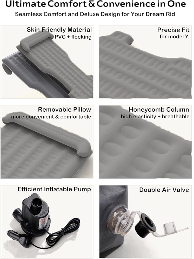 [Effortless Setup & Convenience] Say goodbye to tedious setups! Our air mattress mat is engineered for quick and easy inflation, thanks to the included air pump. In less than 3 minutes, you can transform your Tesla Model Y's trunk into a cozy and inviting bed, saving precious time and effort on your adventures.