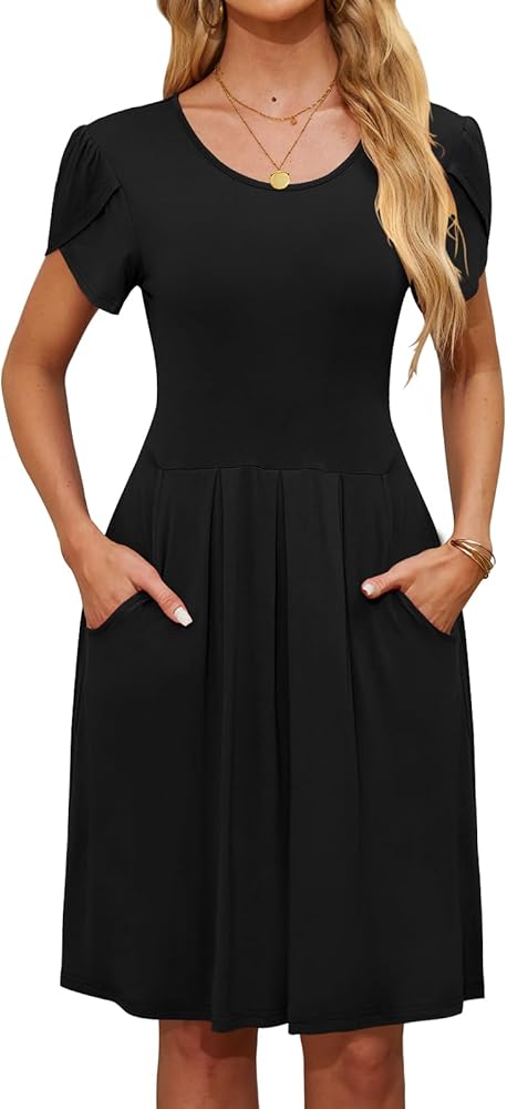 ❤ 【 Features 】 Crew neck, petal/tulip sleeve, above the knee length, two side pockets. You can choose the solid color dress or the dress with beautiful prints!
