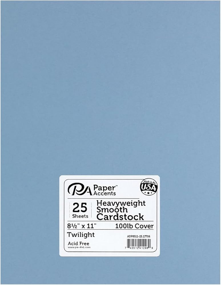 PA Paper Accents Heavyweight Smooth Cardstock 8.5" x 11" Twilight, 100lb colored cardstock paper for card making, scrapbooking, printing, quilling and crafts, 25 piece pack
