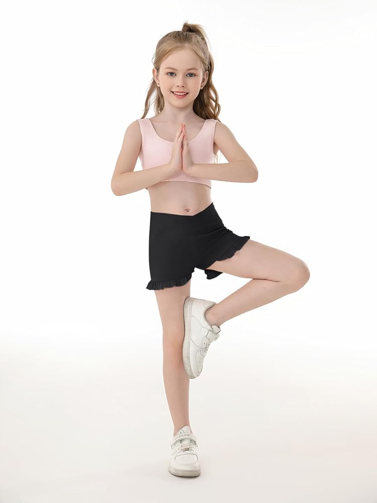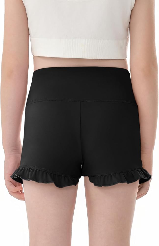Ruffled Elegance: Girls' athletic shorts feature stylish ruffles, adding a fashionable twist to gym or dance wear.